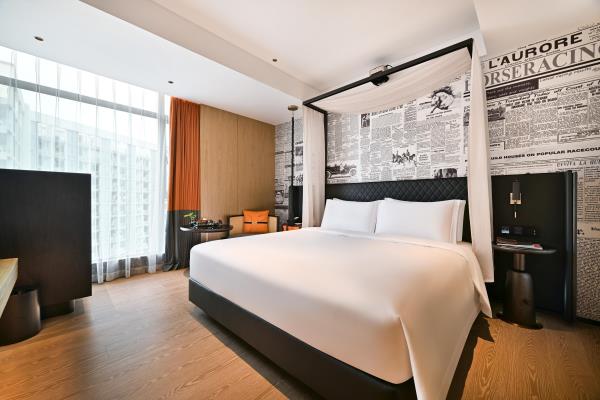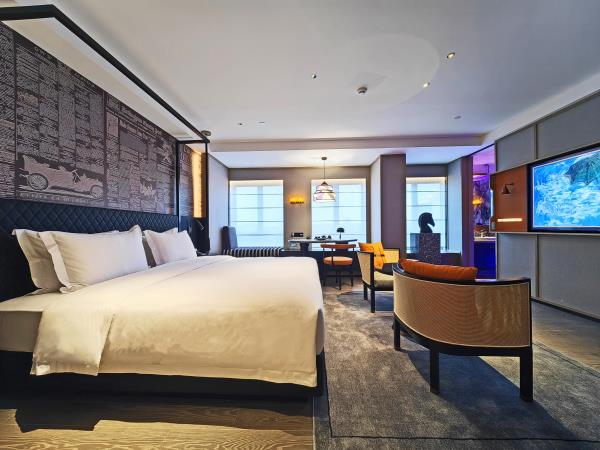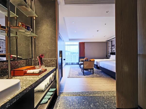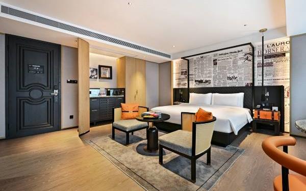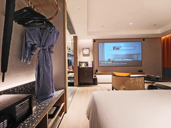 酒店坐落于开创大道与科学大道交汇处,位于广州科学城总部经济区。步行1分钟可抵达地铁6号线暹岗站D出口,约5分钟可抵达万达广场(地铁1站)和广州宝能观致文化中心(地铁2站)。毗邻中国南方电网有限责任公司、广州国际羽毛球培训中心、国际网球中心、归谷科技园、科学城创意大厦 、广东软件园、华南新材料创新园、北斗产业园、TCL文化产业园等,酒店前往广州商务中心天河区、琶州国际会议中心约30分钟方可抵达。位置优越,交通便捷。酒店附近880米万达广场大型综合购物中心,商场有著名商户、餐饮配套及美容美体等生活配套。 这是一间充满故事的休憩之所,在这里将带给每一位旅人全新的住宿体验。酒店房间采用后现代设计风格,更配备现代影音设备,仿佛置身于古罗马竞技场中欣赏视听盛宴。房间配备床具,65寸超清液晶电视或100英寸高清影音播放系统支持移动设备投屏,把每一秒都变成是享乐生活,灵动十足的沙发设计,电动双层遮光窗帘,高端木质地板,若烟雨珠江般的淋浴设计,我们让您体验的每一件豪华设施都讲述着一幅幅生动的故事,这不仅仅有豪华的住宿体验,是一场穿越空间及时间的旅行。 酒店附设设施齐全的健身房,洗衣房,环境典雅的西餐厅。全天候地下停车场等完善的配套设施,为国内外宾客提供全方位优质的服务。从大堂的典雅设计到房间后现代的设计风格融入人们对时下生活的见证。和我们一起,在旅途中停留时,深深地去感受每一个动人的故事。