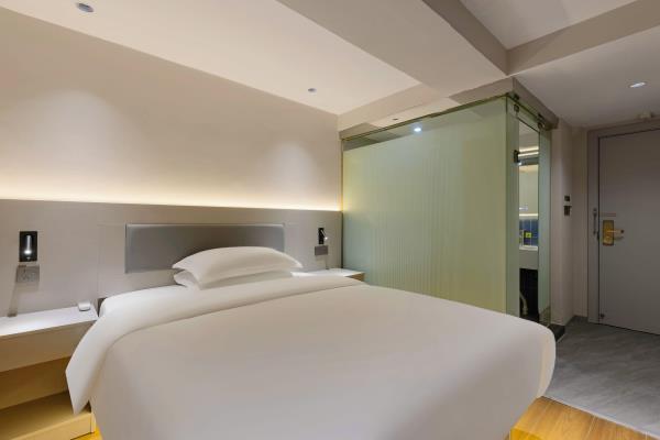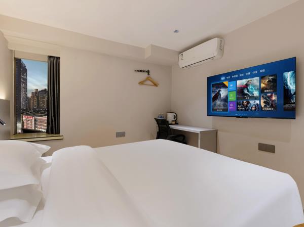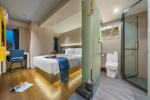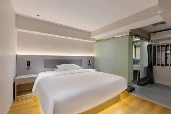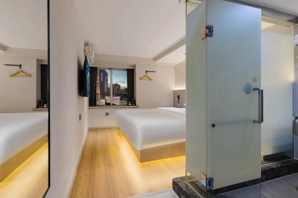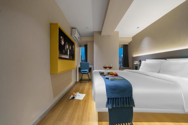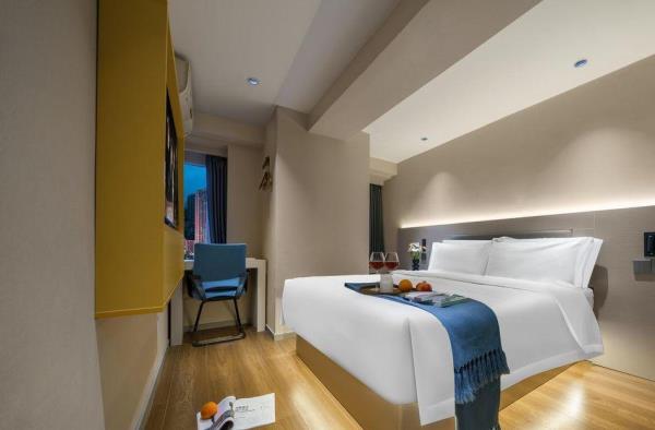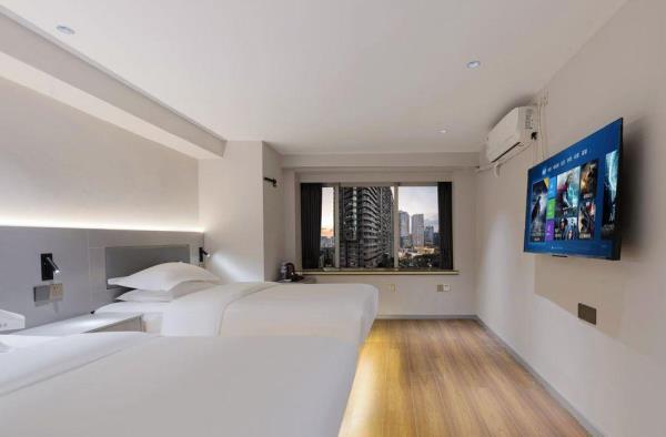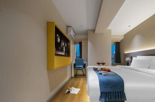 【风格】本酒店为全国连锁品牌,干净卫生。装修简约时尚,前卫大气 【位置】酒店在观音桥步行街内[金岗大厦]13楼,地铁3号线2号出口右转50米或9号线7号出口左转步行两分钟即到 【配套】酒店位于重庆极受年轻人欢迎的大型综合商圈观音桥,步行街洋溢着青春活力的气息。有新世纪、新世界、龙湖北城天街、星光68等十余大型百货商场卖场及数个美食街,重庆特色及全国美食,各类品牌奶茶冷饮,好物美食,琳琅百货尽在身旁。近“你好重庆”网红大屏打卡点,密室、桌游、影院等各类休闲娱乐设施应有尽有。周边陆九五八医院、红十字会医院等。 【周边】“你好重庆”网红大屏打卡点、九街“酒吧一条街”、北仓文创公园 【交通枢纽】 重庆北站南广场(龙头寺长途汽车站):3号线直达“重庆北站南广场站”约15分钟 重庆西站:9号线红岩村换乘5号线达“重庆西站”约50分钟。 沙坪坝站:9号线直达“沙坪坝”站 约30分钟 江北国际机场T2:3号线直达或9号线鲤鱼池换乘10号线 1小时 江北国际机场T3:9号线鲤鱼池换乘10号线 50分钟长途汽车站:3号线直达 陈家坪长途汽车站:9号线富华路换乘18号线,再奥体换乘环线 菜园坝长途汽车站:3号线到两路口换乘皇冠大扶梯到菜园坝 出租车&网约车:楼下即召 【景点】 解放碑(洪崖洞、国泰艺术中心、八一路、长江索道):3号线换1号线或9号线江北城换6号线小什字站 较场口(十八梯、山城巷):3号线换1号线较场口站 朝天门:3号线换1号线朝天门站) 鹅岭公园&二厂文创艺术中心:3号线换1号线鹅岭站 磁器口(渣滓洞白公馆):3号线(9号线)换1号线磁器口站 李子坝:3号线换2号线李子坝站 曾家岩:(周公馆、中山四路、大礼堂、三峡博物馆)3号线换2号线曾家岩站 动物园:3号线换2号线动物园站 建川博物馆:3号线换2号线谢家湾站 奥体中心:3号线换2号线袁家岗站或9换18奥体中心站 鱼洞华熙LIVE:3号线鱼洞站 龙兴足球场:9号线头塘换4号线龙兴站 千厮门大桥下江滩公园:9号线江北城换6号线大剧院站 龙门浩老街&下浩里:9号线江北城换6号线上新街站 国际会展中心:3号线红旗河沟站换6号线,礼嘉换国博线或9号线换10号线 长江国际:9号线鲤鱼池换10号线后堡站3号出口左转(2号口后堡文创公园) 川美黄桷坪涂鸦一条街&铁路公园: 9号线富华路站换18号线黄桷坪站 白居寺大桥下“星空之门”:9号线富华路站换18号线巴滨路湿地公园站。