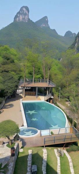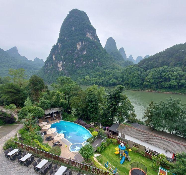 本店位于桂林阳朔美丽的漓江河畔,酒店依江而建。坐落于著名的风景区双滩村半山腰,脚踩漓江,俯瞰整个江景,山水如画,置身于诗画间,漓江、岩溶山峰一览无余。离著名的西街和阳朔县城约2公里,离桂林至阳朔游船下船码头约1公里,离繁华闹市不远,却隔绝了闹市的喧闹与嘈杂,让您在灵山秀水中畅游!酒店同时配置有户外无边际泳池,观景平台,中西餐厅,户外休闲吧,停车场,700多平方园林绿地等丰富的公共设施和空间,让您随时可以找一处空位就坐,于山林云雾间,伴着和熙的阳光和江面的微风,享受属于自己的宁静。酒店在现代简约的装修风格中融合了中国传统文化底蕴,时尚而又典雅。