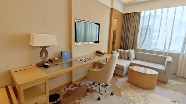 酒店坐落于临沂市河东区滨河东路与李公街交汇处,与临沂的标志性建筑——临沂电视塔隔河相望。酒店四周交通便利, 距机场仅10分钟车程,距高铁站20分钟车程,商务出行或旅游观光皆可畅达。酒店拥有3个风格迥异的中西餐厅及大堂吧,1个大宴会厅及8个面积大小不等的中小型会场,是一家国际高端商务酒店。