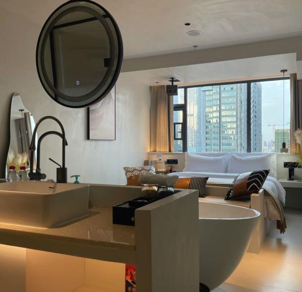 酒店位于长沙市中心,芙蓉区文艺路街道韶山路鑫天大厦。酒店有不同的房型选择满足不同的客户需求,追求设计感的同时更加注重客户舒适和体验度。配套:公共区域有清吧小酌体验,并且酒店配备屋顶花园、独立大堂、洗衣房,屋顶花园设有1011camp露营餐吧,360平方可以露营烧烤,方便客户打卡拍照。每间房设有高清巨幕投影仪、智能马桶、智能影音系统;70%的房型设有壁炉和浴缸。周边:临近长沙五一广场、坡子街、太平小吃街、IFS国金中心、黄兴步行街、解放西酒吧街、超级文和友、湖南广电、湖南省博物馆,交通便捷,打卡点众多,欢迎大家来长沙玩儿呀。