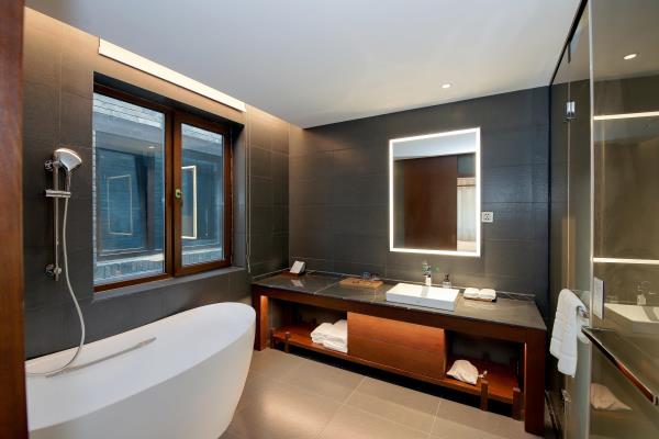 本酒店是一家集住宿、餐饮、休闲度假、商务会务为一体的度假型酒店,酒店位于浚县古城西城门风景区向东(由于古城内无法停车,故停车场在西城门向西——隐沫度假酒店停车场),浚县古城隐沫度假酒店是东呈国际集团旗下专注于提供沉浸式度假体验的酒店品牌。酒店位于浚县古城风景区内,毗邻关帝庙,翰林府。酒店设计意图跳出现代酒店的传统模式,将文化主题酒店打造成浚县的一张旅游名片,通过当地文化讲述浚县故事,满足现代人心灵休憩与人文体验的需求,通讨对原有建筑的结构和空间进行重组,在旧建筑基础上完成新旧空间组合,满足舒适的入住需求, 酒店提供就餐、娱乐、商务、社交等多重服务,营造主题氛围和文化体验,满足更高的审美要求和对美好生活的追求。通过完善配套,品质升级,文化演绎,深度体验,将项目打造成为精品主题酒店,以及浚具文化旅游新地标。酒店共2层,总面积约4000平方米。酒店分为三个客房区域共计60间客房。酒店配备有健身房、洗衣房、儿童乐园、会议室(可容纳百余人会议)。酒店设有自助餐厅,提供中西餐结合的自助营养早餐,早餐品类三十余种,可接纳会议团队、旅游团队、研学等;酒店以开放式的观景阳台和全智能的高科技设施,将浚县古城的悠悠美景与现代化的全智能完美结合在您的专属度假空间。以沉浸在当地、沉浸在当下、沉浸在当中的品牌理念和生活态度,给您带来沉浸在旅途中的全新享受!酒店距离高铁站-滑浚站,仅有15分钟车程,是您商务、旅游下榻的理想之选。