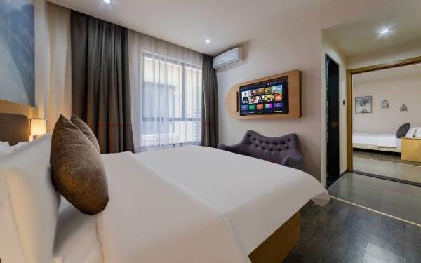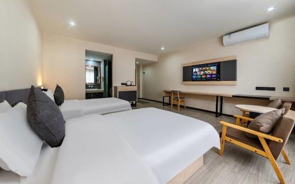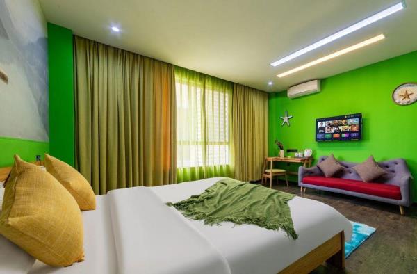 来十里银滩,就住十里湾。01酒店拥有多间不同主题客房、雅致客房,豪华亲子大床房(2.7米)、亲子家庭套房等。02酒店设有大型专用停车场、观光车接送。白助洗衣、自助厨房等贴心服务。03酒店毗邻海岸,距离沙滩10多分钟,交通便利。04酒店私有定制喜盈门床垫,荞麦枕头,为旅客提供安静、舒适的睡眠环境。酒店拥有多间不同个性主题的客房和商务客房,以及豪华亲子大床房(2.7米)、亲子家庭套房。酒店私有定制喜盈门床垫,养麦枕头,为旅客提供安静、舒适的睡眠环境。