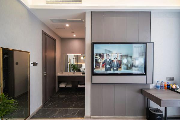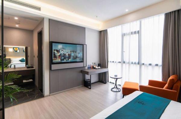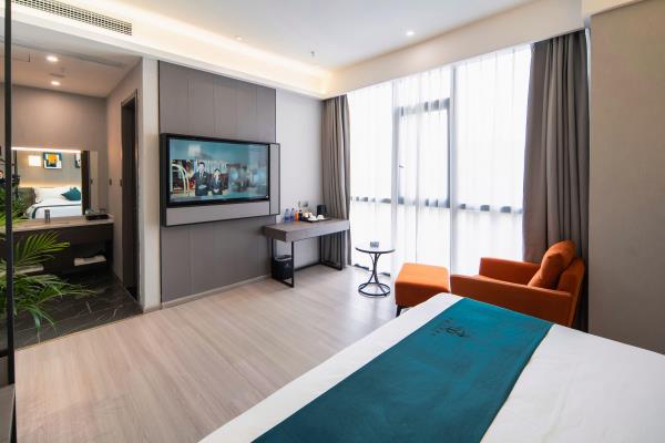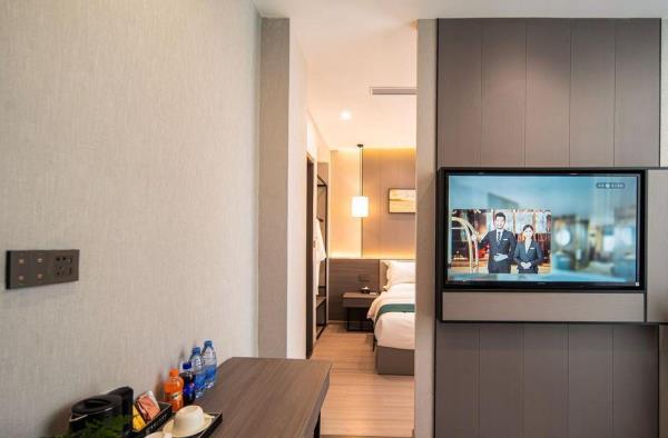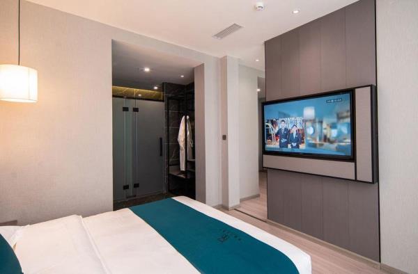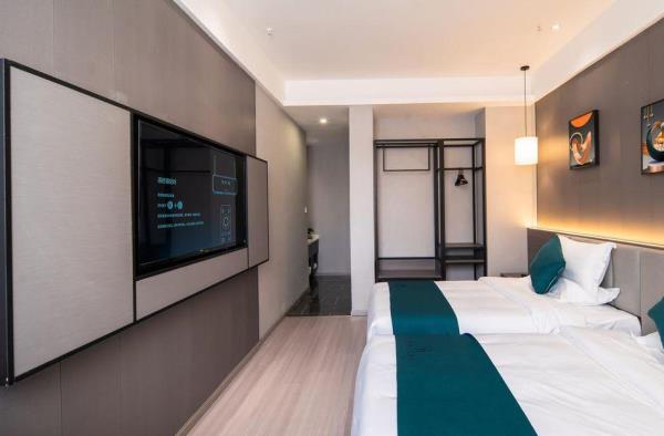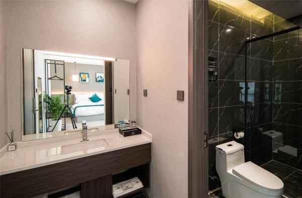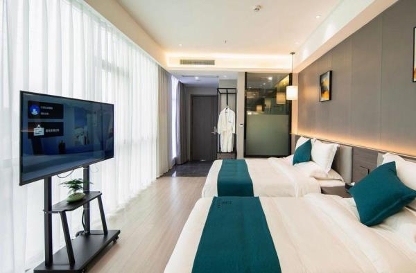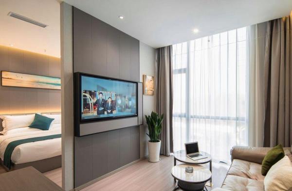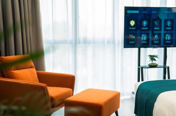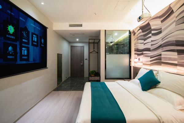 什邡悦阁云朵酒店位于什邡市商业及娱乐中心为一体地段,人间烟火地,毗邻蓝剑天耀中心购物广场及什邡电子科技大学及人间烟火什邡夜市,酒店周边集购物,娱乐,美食为一体的全智能酒店, 酒店客房视野效果极好,更有智能观影房,机麻房,豪华套房等多种房型任您自由挑选,房间专设观影房,配上一杯微醺的酒酿,感受包场电影视觉效果~,简约而不失大气的客房布局,酒店聘请国外首席设计,装修风格年轻,时尚,典雅,以及智能系统的巧妙融合,设备设施现代化全智能语音操控,让您体验温馨的酒店服务,为旅行居住在外,千般跋涉,万种找寻的您提供您所想,您所需的舒适栖息之地。