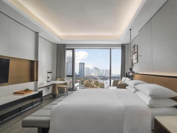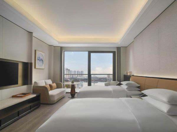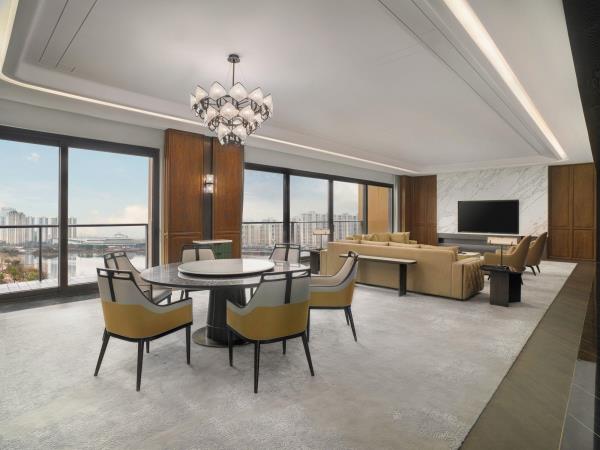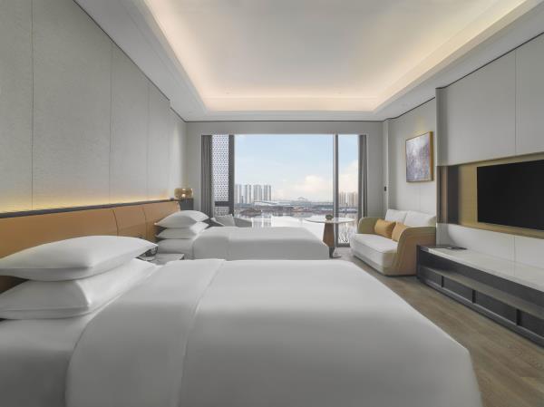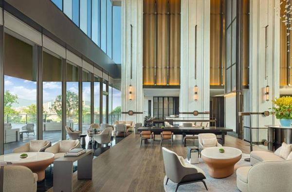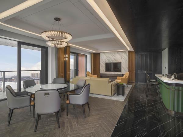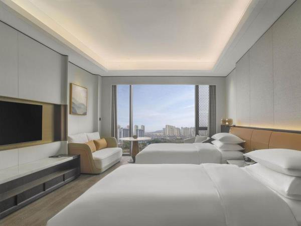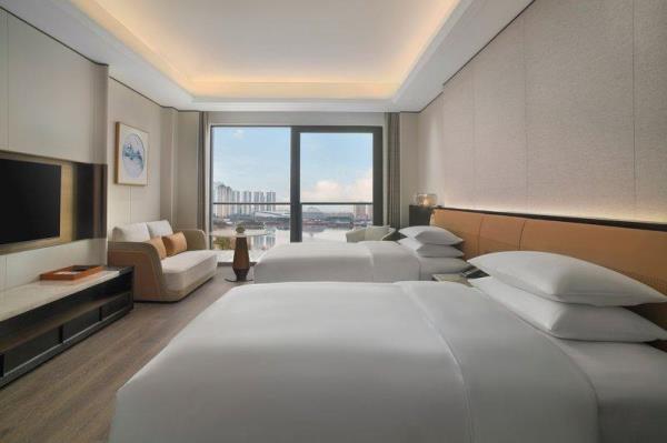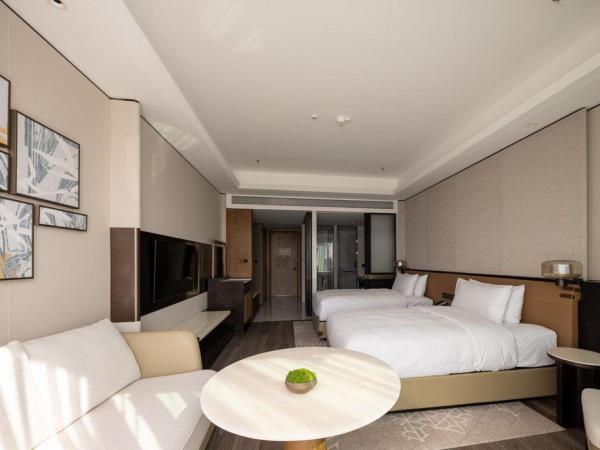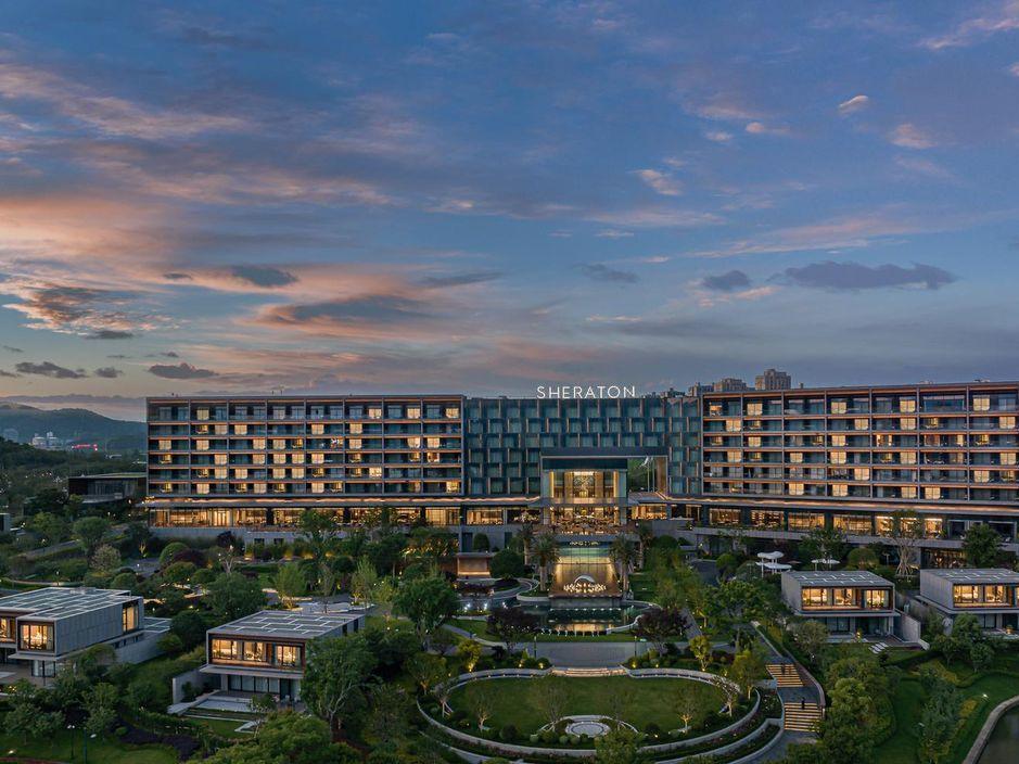 山海会聚,自在焕新。酒店酒店位于宁海县新城中央商务区,酒店周边风景优美,举目可见秀美灵动的天明湖;距高铁站、客运中心、G15沈海高速宁海出口仅5分钟车程,毗邻国际会展中心和明湖银座商务区。酒店以多层次的设计来营造空间质感,在品牌以一贯之的温馨舒适风格之上,糅合了新颖现代的元素,以及宁海当地自然和人文意境,为宾客呈现一处舒适放松的多功能复合空间,自在惬意的连接彼此。酒店拥有客房,包括面积50平方米起的现代舒服的客房和套房及独栋别墅。大部分客房、套房及所有3居及4居独栋别墅均配备阳台,可饱览天明湖的风景。柔和的装饰和浅木色调相得益彰,营造出温润典雅的居家之感。客房内饰采用皮质、马鞍扣等来呼应驿站主题,打造简约雅致的高级质感。所有客房均配备有助于提高效率的设施,比如独立的办公桌、集成充电器和多层次照明系统,提高宾客居停期间的便利性和舒适度。其他高档设施包括:55寸液晶电视,定制SIMMONS席梦思床垫。所有客房均配备杜拉维特定制卫浴设施并设有步入式淋浴房及Gilchrist & Soames品牌沐浴产品。酒店行政酒廊(The Executive Lounge)是一处专为万豪旅享家精英级别会员及入住酒店行政楼层的宾客所设的私享空间,宾客可在此享用免费小食与饮品、商务服务以及晚间欢乐时光等一系列礼遇。酒店拥有2,665平方米的宴会及会议活动空间,其中包括1间宴会厅和7间多功能商务会议,并配有齐全且高品质的影音设备,将满足各位宾客不同商务会议和社交活动等各式需求。酒店拥有风格迥异的餐厅为宾客展示国际美馔和本地风味。食光全日餐厅(Daily Social)空间朗阔,氛围雅致,配备开放式厨房,悉心呈现琳琅满目的国际美食和当地风味自助大餐以及零点精选。此品牌标志性的采悦轩(YUE)中餐厅选用时令新鲜的本地食材烹饪地道本帮菜与经典粤菜,包间视线开阔可将天明湖的秀丽风光一览无余,是商务宴请和家庭聚会的理想场所。集酒吧、咖啡吧和市集三种功能于一体的&More by Sheraton咖啡吧,为宾客提供从白天到夜晚的空间流畅转换。宾客可在此享用精选当地食材制作的便捷美味,而且可根据个人口味及用餐时间享受到定制化的服务。