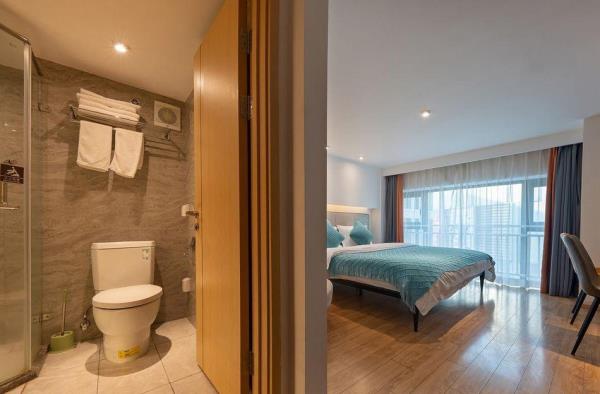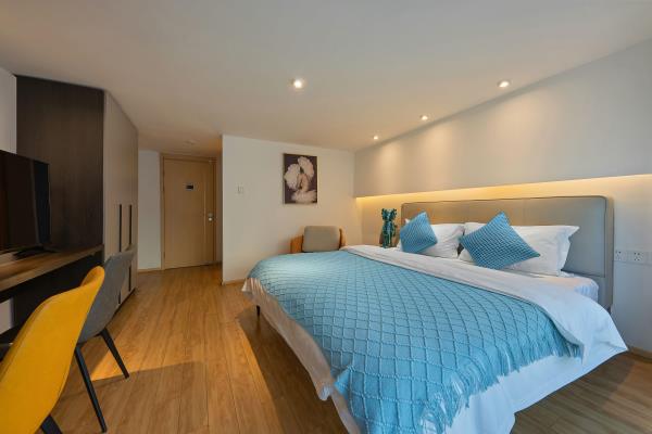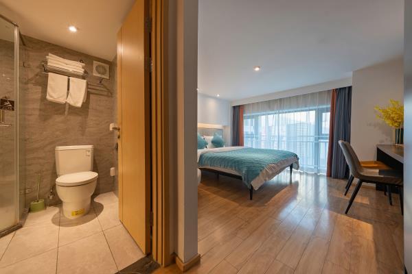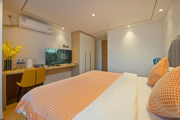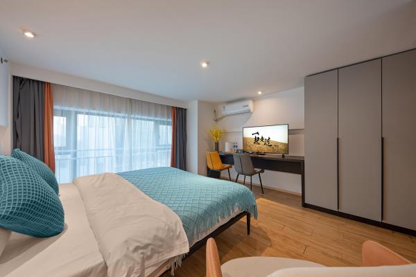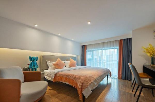 本店为复式双钥匙公寓格局,下单一间是复式房其中的一间 酒店位于西湖区蒋村CBD商务中心。酒店周边商业密集,周边聚集西溪银泰、五洲国际、印象城,泰禾广场等,同时自带龙湖天街商业综合体,无缝对接地铁5号线蒋村站,乘地铁30分钟之内可直达西湖风景区,武林广场,城站火车站等城市核心区,更有机场快线直达萧山国际机场(在建中)。亦可乘坐水上巴士直达武林广场,尽享余杭塘河、千年古运河之风采。酒店还毗邻浙大紫金港校区,华策影视中心。周边产业园聚集,配套成熟,出行及其便利。酒店内部采用“双钥匙”户型设计,楼上楼下均为独立房间,互不影响,同时设有共享厨房。装修风格为近年流行的极简轻奢风,简洁大方。酒店设有商务大床房、复式亲子双床房等多种房型,满足客户的不同需求。