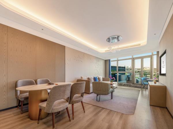 酒店位于九江市濂溪区鄱阳湖生态科技城科创中心3号楼,整体占地91亩,坐落于“匡庐奇秀甲天下”之誉的庐山风景区脚下,相连风光旖旎的芳兰湖湿地公园。作为开元名庭品牌在庐山北麓湿地公园的又一力作,整体延续了开元系 “稳重雅奢,传承人文” 的设计理念,用现代笔触勾勒东方雅韵;酒店整体外型设计如同一只正待展翅而翔于天空的飞鸟,装饰设计以时代与地域的融合呈现给宾客非同凡响的旅居艺术。酒店拥40~120平米的宽敞空间客房,每间标配落地窗与超大浴缸、智能马桶,干湿分离卫浴三间室,细节尽显品质;洗衣房、健身房、游泳池等各类设施齐全;酒店配备中西餐厅2个、国风堂包厢8个、大中小型会议厅室7个、675平米宴会厅,LED曲面大屏、现代化多功能视听设备等各类配套齐全;酒店下楼便是湿地公园——观鸟、骑行、慢跑、露营,自然乐趣触手可及!步行可至游乐场、动物园,亲子遛娃好去处!庐山脚下,天然氧吧吐纳山岚;芳兰湖畔,湿地画卷悠然舒展——九江芳兰湖开元名庭大酒店,于此山水胜境静候。