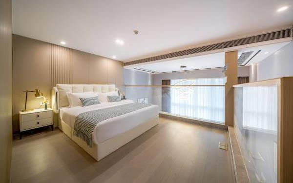 客房设施:酒店拥有多种房型,如全景轻奢 loft 双床套房、私人影院情侣主题 loft 套房、全景意式 loft 大床套房等。房间面积宽敞,从 52 平方米到 60 平方米不等。所有房间都配备了免费 Wi-Fi,且设有巨幕投影,尺寸从 75 寸到 100 寸不等,让住客能享受沉浸式观影体验。此外,房间还配备了国际品牌洗衣机、烘干机、冰箱,部分房型有智能灯控、大金空调,采用复式结构,设有双卫生间,为住客提供舒适便捷的居住体验。 配套设施:酒店设有公共停车场,并有充电车位,方便自驾的住客。同时,还提供行李寄存、叫醒服务、叫车服务、24 小时前台服务等,满足住客的各种需求。此外,酒店内还有会议室、餐厅、咖啡室等设施。 周边环境:酒店周边配套设施完善,各式商铺林立,有咖啡店、餐厅、水果店等,能满足住客的日常生活需求。同时,酒店靠近龙岗大运体育馆,对于前来参加体育赛事、演唱会等活动的游客来说,十分方便。