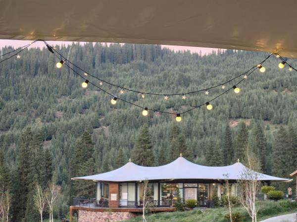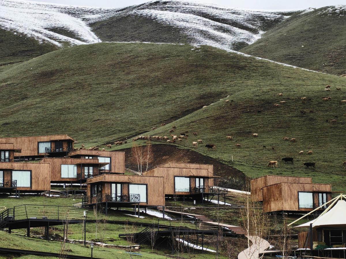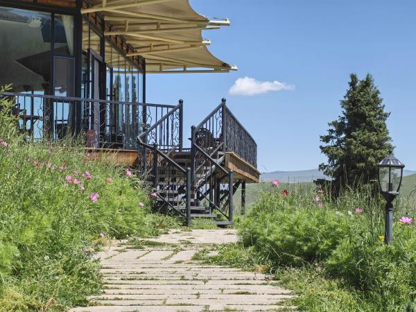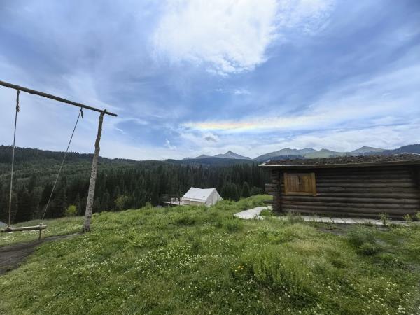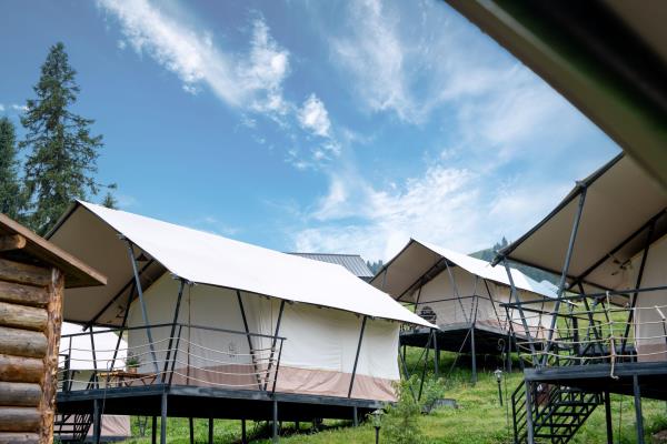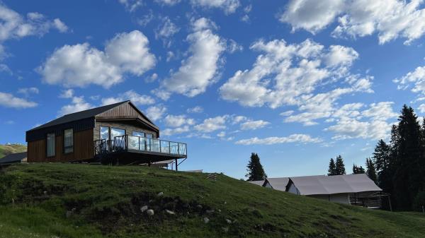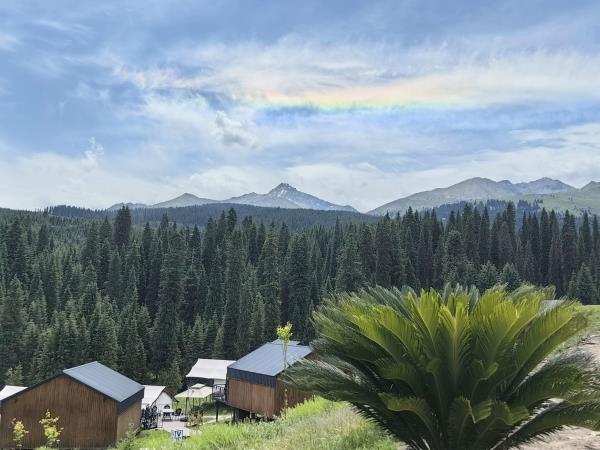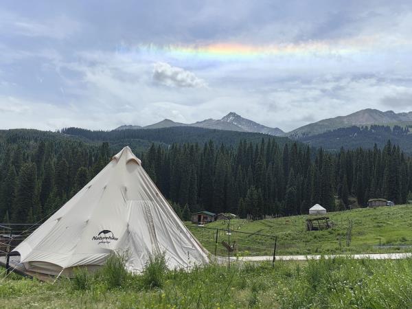本店坐落于天⼭北麓,环抱在雪岭云杉间,清泉穿营⽽过,⾝置其间,天是蓝的,⻛是⾃由的,⽔是⽢洌的,避开尘嚣,回归⾃然。 营地展现乌孙古道历史⽂化元素,是以哈萨克特⾊餐饮、演艺、住宿、特⾊产品、⽂化体验为⼀体的⼀站式旅游⽬的地。
