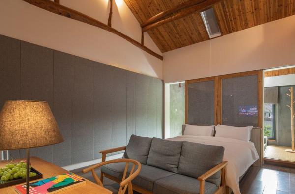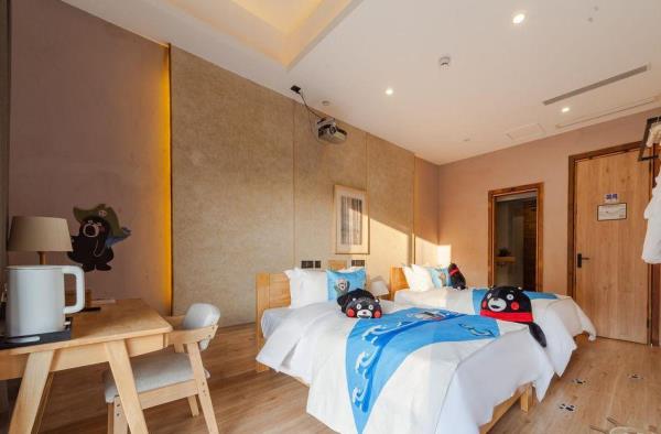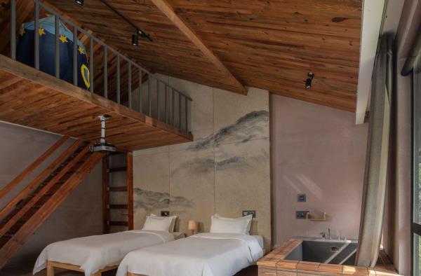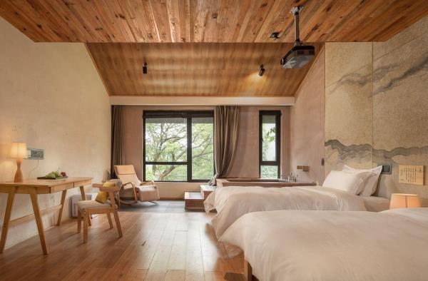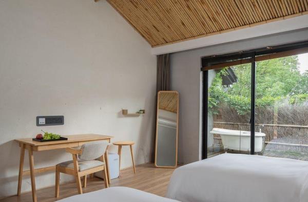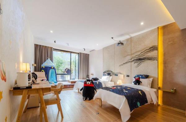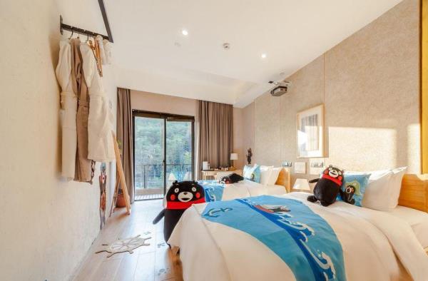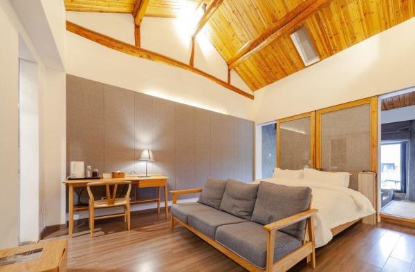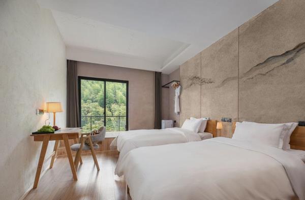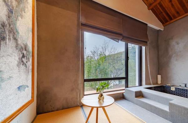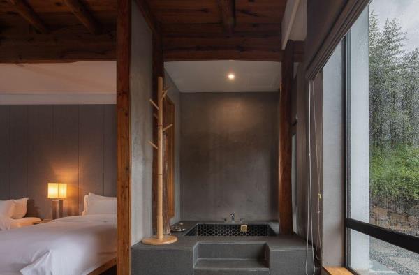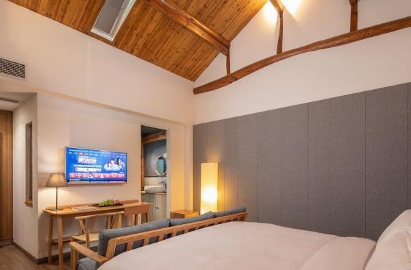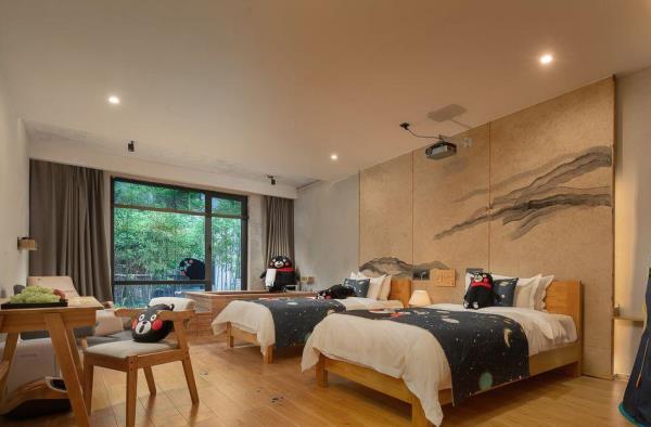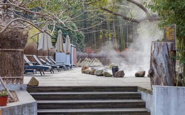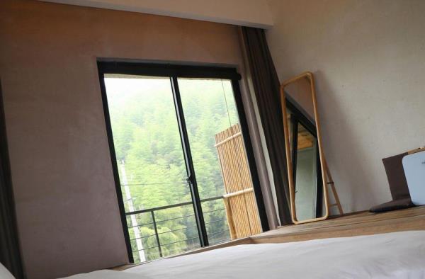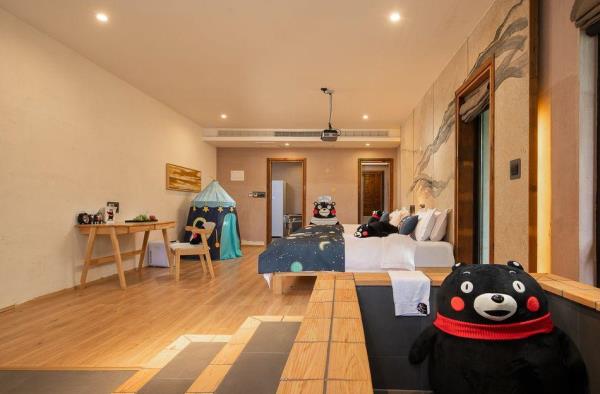 客堂间·莫干山温泉主题酒店位于德清莫干山干庙坞,坐落在莫干山700米的海拔高度。建筑面积约2600㎡,占地约12亩,共计30余间日式客房,均设有地暖,其中约13间客房均有室内汤池,私密而随性。虽都主打日式风格,格局却不同,多种房型,满足多种需求。房间内精心摆设,禅意古朴。台灯、遥控投影仪、智能电水壶、洗漱用品、茶具、棉麻靠椅,每一样都是主人精心挑选。熊本熊作为日本熊本县的地方吉祥物,风靡整个世界,客堂间将此别出心裁的引入莫干山,精心打造了熊本熊系列主题房,成为莫干山一道清新的风景。一个个可爱的熊本熊们被安置在大大小小的角落,大到靠枕、墙贴、玩偶、被单,小到闹钟、摆件、台灯、窗花,等待着你慢慢发现偷偷藏匿的美好。酒店拥有能同时容纳70人就餐的日式餐厅,原汁原味的日式榻榻米,宽敞舒适。餐厅以轻食养生餐为主,在莫干山实地取材,采用和风日式料理的手法烹饪美食。菜品经过大厨反复试菜和甄选,精致的日料摆盘、自然时令又有独特美感,食在客堂间,是一种仪式也是一场味觉上的盛宴。