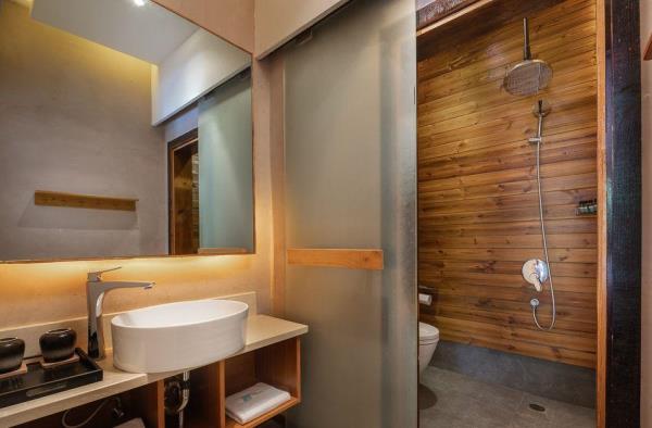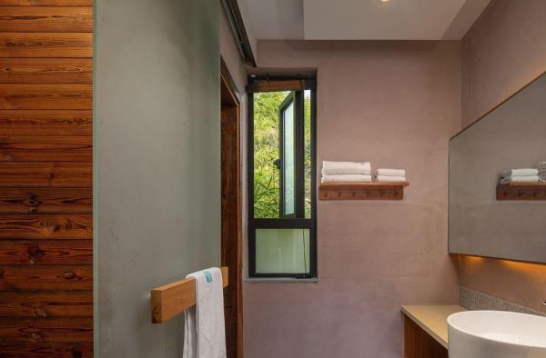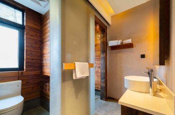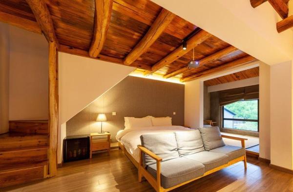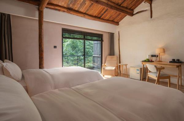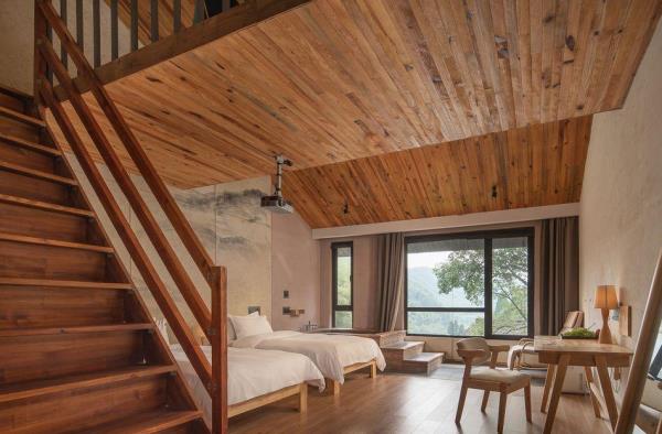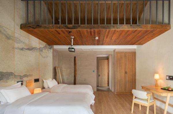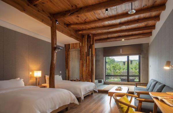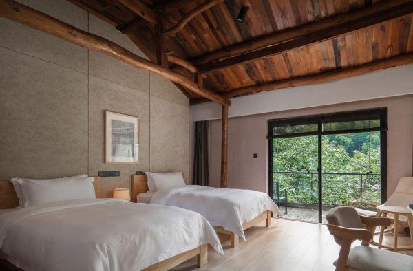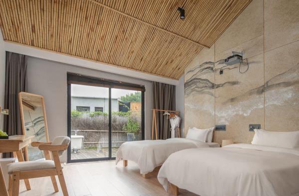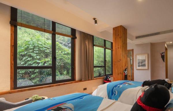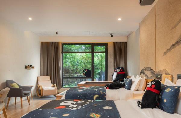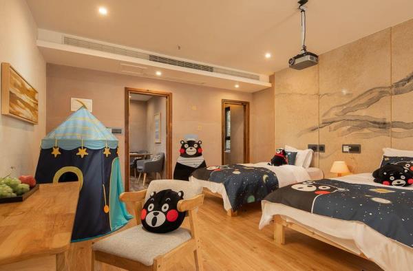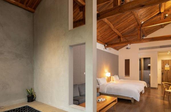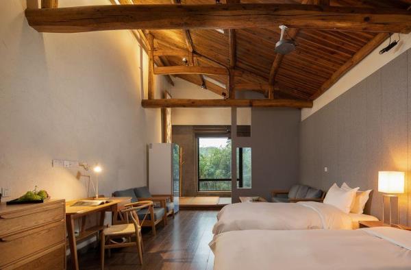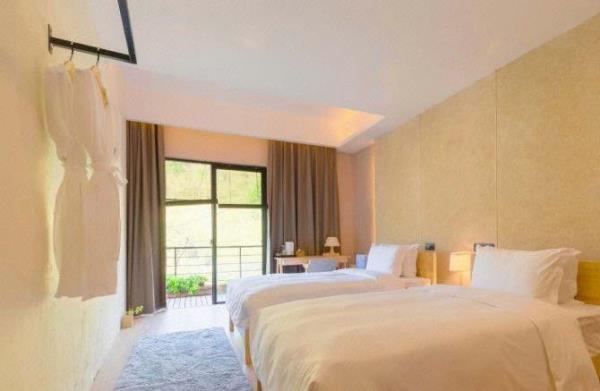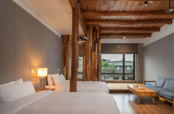 客堂间·莫干山温泉主题酒店位于德清莫干山干庙坞,坐落在莫干山700米的海拔高度。建筑面积约2600㎡,占地约12亩,共计30余间日式客房,均设有地暖,其中约13间客房均有室内汤池,私密而随性。虽都主打日式风格,格局却不同,多种房型,满足多种需求。房间内精心摆设,禅意古朴。台灯、遥控投影仪、智能电水壶、洗漱用品、茶具、棉麻靠椅,每一样都是主人精心挑选。熊本熊作为日本熊本县的地方吉祥物,风靡整个世界,客堂间将此别出心裁的引入莫干山,精心打造了熊本熊系列主题房,成为莫干山一道清新的风景。一个个可爱的熊本熊们被安置在大大小小的角落,大到靠枕、墙贴、玩偶、被单,小到闹钟、摆件、台灯、窗花,等待着你慢慢发现偷偷藏匿的美好。酒店拥有能同时容纳70人就餐的日式餐厅,原汁原味的日式榻榻米,宽敞舒适。餐厅以轻食养生餐为主,在莫干山实地取材,采用和风日式料理的手法烹饪美食。菜品经过大厨反复试菜和甄选,精致的日料摆盘、自然时令又有独特美感,食在客堂间,是一种仪式也是一场味觉上的盛宴。