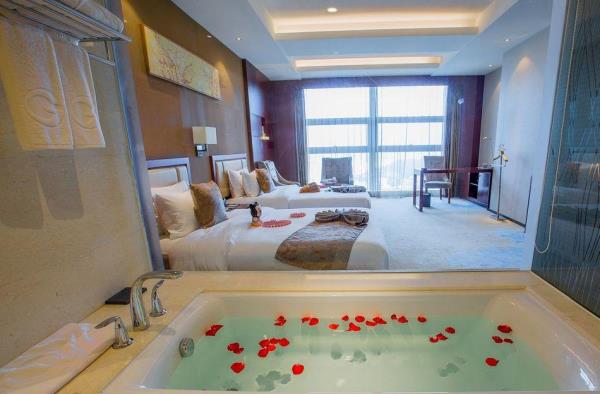 大饭店地处永泰城市综合体商业中心圈内,毗邻动车站、老城区,驱车去风景区青云山和云顶、省会福州都非常方便。大饭店整体占地5000平方米,建筑面积52000平方米,地下两层、地上26层,集商务、会议、旅游、休闲为一体,是一家休闲养身的世外桃源。客房设计经典,氛围高雅的餐饮及会议场所的无限空间设计,让你尽享尊贵。1200平方米无柱式豪华宴会厅更是实现真情相聚的所在。室外游泳池、畅唱KTV、温泉SPA、足疗健身、睿智棋牌等,更是实现自我世界本色的驿站。