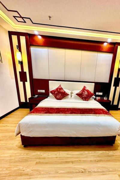 位于扎赉特旗多兰湖公园西门南面,通海路与西湖路交汇处,四周交通便利,配有充足的停车场,为您的住宿保证了便利的出行选择。本宾馆有标间房,大床房,套房,婚房,供您选择!每个房间装修精致典雅,格调大气豪华,并配有智能语音电动窗帘和无线网络,为每一位客人提供安全舒适的环境,让您得到短期的休息和睡眠的空间。