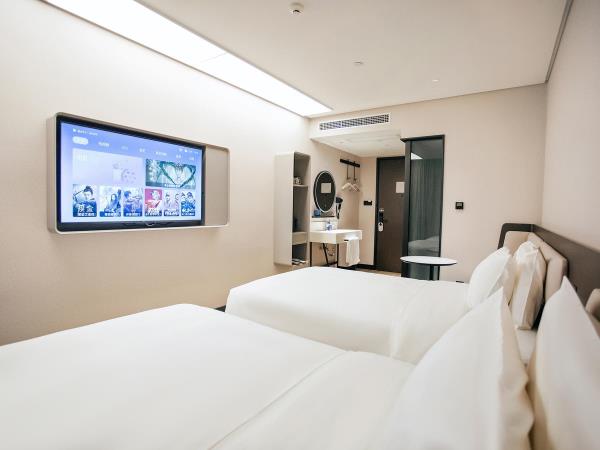酒店位于怀柔区滨湖街12号楼。酒店全屋智能,加热马桶,小度音响 ,电动窗帘,智能灯控,电视智能投屏,隐藏式分体空调,24小时不间断电源带 USB专用接口,机器人无接触服务,独立卫生间、淋浴间;。不同房间可能存在偏差,具体以酒店实际为准.【旅游景区】周边有雁栖湖、红螺寺、慕田峪长城、青龙峡等著名景区。【周边配套】步行5分钟即可到达万达广场,京北大世界。【高速交通】距公交916路湖光小区站步行仅3分钟。