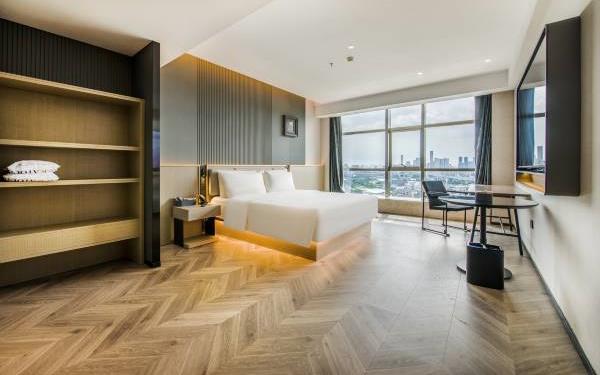广州珠江太古仓亚朵S酒店位于海珠区工业大道中,是亚朵集团旗下高端商旅品牌。酒店毗邻文化底蕴深厚的太古仓码头,临近白鹅潭商圈,周边有大型购物商场(乐蜂广场、富力海珠城、广百新一城等)。距离地铁8号线沙园、燕岗、昌岗大道北10分钟路程,广州南站20分钟,新白云机场30分钟。酒店采用现代化装饰,7至19楼住宿客房,宾客可享有入住体验及延迟退房等专属礼遇,同时酒店设有多间会议室,880平米宴会会议空间根据需求灵活调整,配备高速网络链接及无线网络,酒店还拥有自助餐厅、中餐厅,满足不同宾客需求。