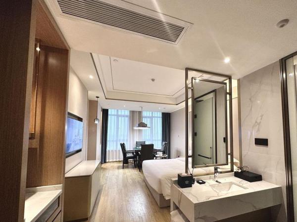 长沙黄金华美达酒店是由温德姆酒店集团(Wyndham Hotels and Resorts®)旗下著名的华美达品牌(Ramada)管理。酒店坐落于长沙城市主干道人民东路,毗邻地铁六号线檀木桥站;地处长沙经济技术开发区、湖南自贸试验区、长沙临空经济示范区交汇处的中心地带,周边有众多大型企业,紧邻京港澳高速、长株高速、长永高速,黄花国际机场、长沙高铁站近在咫尺,地理位置优越,交通便利,是长沙星沙的重要地标建筑。18层高的大厦纵览长沙东部经济迅速发展的活力风采,众多知名企业尽收眼底。黄金华美达酒店为宾客带来贴心舒适的服务,是商旅及休闲游客的首选。酒店建筑面积约1.7万平方米,拥有豪华现代的客房,其设计装饰充分展现长沙这座时尚之都的年轻活力,让您尽享舒适与优雅。