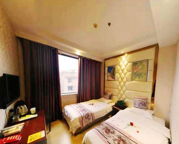 酒店位于乌龟碑街,距离邻水中学约50米,实验中学、金鼎学校约200米.与四川省农村信用社毗邻,交通便利。酒店设有各类温馨客房,并配有茶室、休闲区和停车位,提供24小时热水淋浴、空调、电视、电话和宽带上网,让您在旅途中感受到“家”的温馨和舒适。