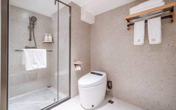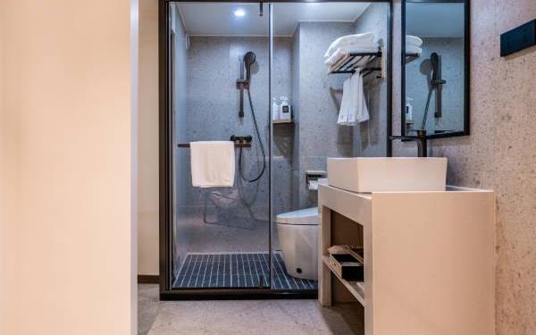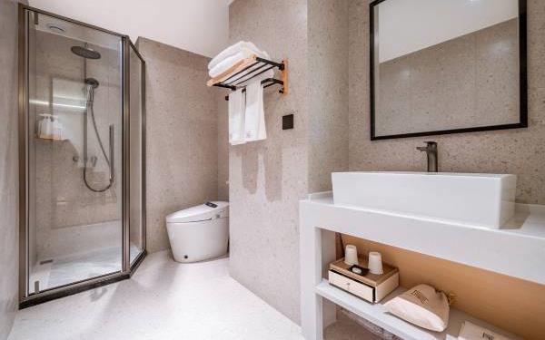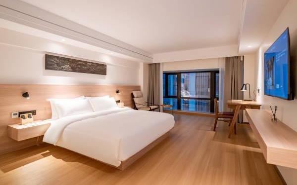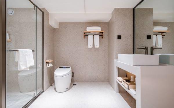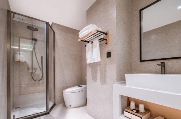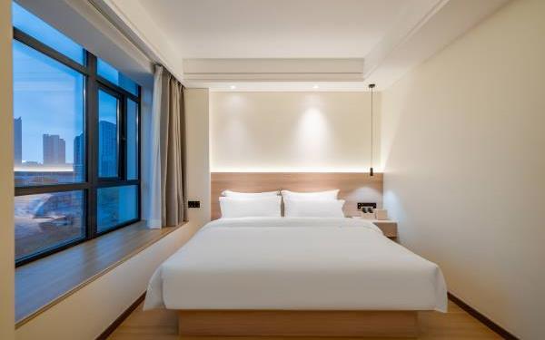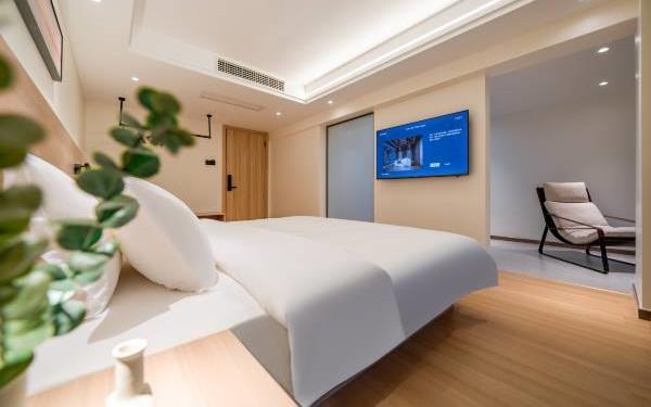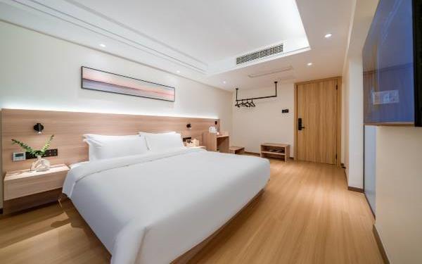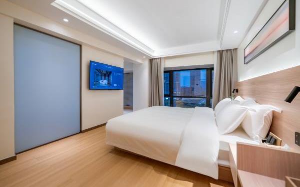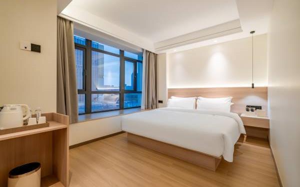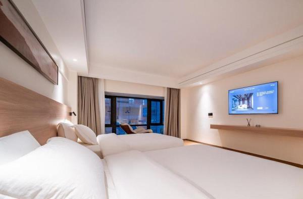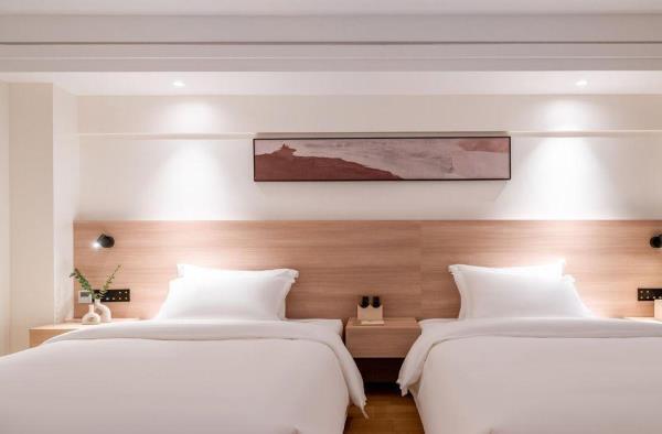 酒店位于贵阳主城观山湖区CBD八匹马富力新天地17栋4楼,交通便利,地铁1、2号线林城西路站步行6分钟可达,多路公交车经八匹马、诚信南路站,私家车客人经诚信南路转至桃林路入地下停车场,乘车或步行客人至碧海南路下车即达。周边生活配套齐全,10分钟内可达绿地沃尔玛、国贸玖福城、红街夜市、千禧美食广场等,吃喝玩乐应有尽有。酒店装修极简,以原木搭配亮色软装,采用独立弹簧床垫,软硬适中,让人躺下去处于完全放松状态,配备全智能马桶、高端洗护用品和高级的淋浴设施打造舒心的放松空间,同时配有自助洗衣房以及自助咖啡茶饮,为旅客打造“还原本我,皆在归途”的居家感,享受来自原途的生活温度。
