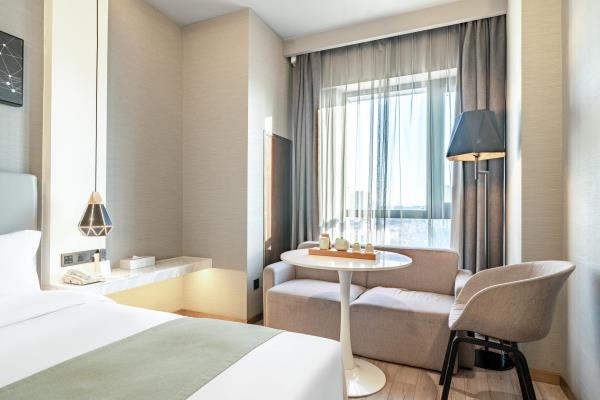 酒店是云锦未来酒店集团旗下中高端品牌,地处东部新城核心板块,毗邻宁波市政府行政中心,步行即可抵达地铁1号线福庆北路站,20分钟直达天一广场等城市地标。酒店周边交通网络发达,覆盖多路公交线路(如微5路、810路等),并紧邻新城实验学校、市行政服务中心、宁波文化广场、东部银泰城等公共与商业设施,商务出行与休闲旅游皆可无缝衔接。