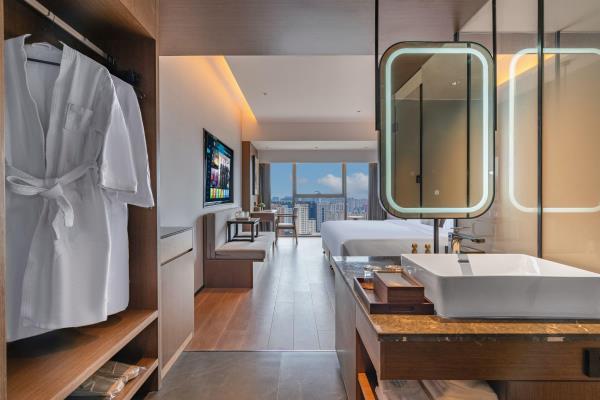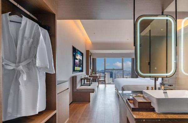 茉舍酒店(郑州CBD会展中心店)地处郑州郑东新区中央商务区核心位置景峰国际大厦写字楼,毗邻高铁东站和郑州国际会战中 心。[酒店特色] 酒店装修典雅,客房全部采用全景落地窗设计,通透舒爽,高层观景体验舒适。舒适床品,知名品牌乳胶床垫,3000多根独立弹簧真正翻身免打扰的舒适体验,洗手间配备高挡进口洗护用品,75寸液晶电视,千兆极速互联网,让您在旅途中轻松自在,安享无忧。[交通便利]酒店附近各路 公交车经过,交通便利,畅行无忧。[高 速WIFI无线网]千兆极速互联网。全楼层无死角覆盖,带给您非凡的入住体验[酒店早餐]为您选取多种健康,新鲜食材,辅以主厨精心烹制并巧妙搭配出的营养早餐供您享用,并悉心按照您的预定时 间,保质保量准时送至您的房间。[周边美食] 酒店周边饭店 众多,各种菜色式样,应有尽有! [休闲娱乐] 酒店临近郑州 郑东各大网红商场,熙地港,木色,新田360广 场,让您吃,行,购,娱步步为营!