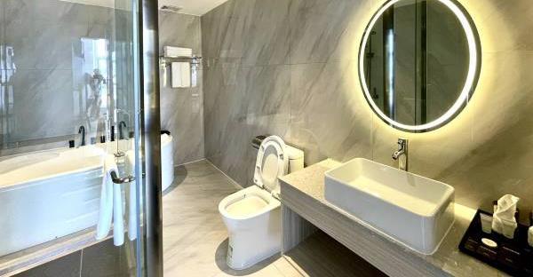 卫浴设施:浴巾、雨淋花洒喷头、淋浴、私人卫生间、毛巾、拖鞋、24小时热水、私人浴室。仅部分房间具备:、浴衣、吹风机