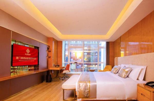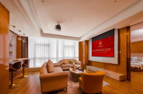 酒店以高雅、富丽、现代化风格给您尊贵、舒适的感觉。地处福建厦门市思明区观音山商务区黄金地段,地理位置优越,交通便捷环境优雅.酒店周边生活配套设施完善,前往鼓浪屿、中山路等旅游景点不是特别远,距离厦门动车站27分钟、高崎机场仅23分钟车程。大楼建筑面积27219㎡,地面19层,地下3层。酒店客房拥有多种房型供您选择,豪华影音套房给您影院式体验、温馨情侣套房为爱提供浪漫的港湾、豪华亲子套房让您和孩子尽情享受浓浓的亲子时光,各种海景、城景商务间及麻将房,如家居般温馨的海景大床房和城景双床房,瞬间掌握全球风云的行政套房等,让您在旅途中既能享受到办公及娱乐的便捷、也能感受家的温暖。酒店一层为酒店大堂及餐厅,为您提供健康美味的自助早餐,午、晚餐提供广式茶点服务及晚间演艺时光。三楼及S层为众创空间,为创客提供良好的工作、网络、社交、资源共享空间,助您成功启动创业之梦。五楼为健身运动中心,齐全的设施设备可满足您不同的锻炼需求,同时配有专业教练供您选择,令您在旅途中也能轻松畅享运动的乐趣。选择本酒店,让您充分感受美丽鹭岛的浪漫,家的温馨。我们以细致、专业、贴心的服务,是您的理想之选。