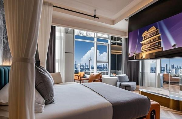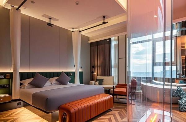 熹堂·Meteor高空酒店坐落于成都核心地标——春熙路太古里339商圈,紧邻春熙路步行街、太古里时尚街区、建设路美食街等热门网红打卡地,是潮流与奢华的完美交汇点。酒店占据城市超高层云端视野,坐拥360度全景天府风光,白日可俯瞰城市天际线,夜晚独享璀璨霓虹夜景,成为明星、网红争相打卡的“高空美学地标”。 客房深度融合科技与舒适,标配AI智能语音系统,一声指令即可操控空调、灯光、巨幕投影等设施,打造未来感入住体验。酒店紧邻地铁3号线红星路站,15分钟直达成都东站,30分钟迅捷抵达双流国际机场,商务出行与休闲旅居皆从容无忧。 我们以“云端管家”式服务为核心,从细节传递温暖,让每一位宾客在繁华之上,感受私密、尊崇的栖居诗意。
