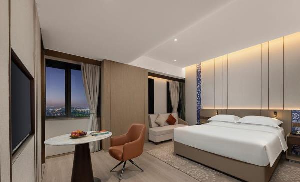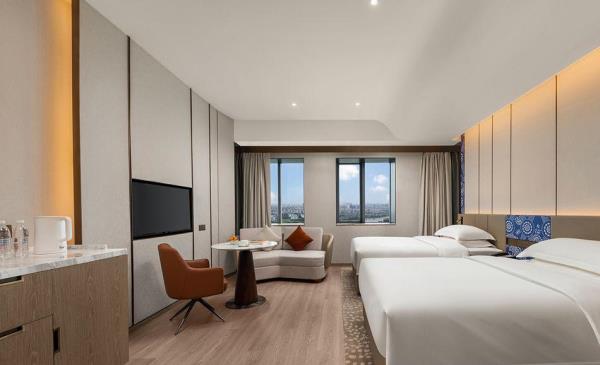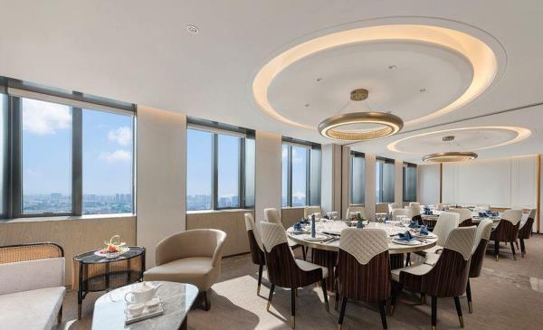 酒店位于嘉兴市南湖区禾兴南路520号,距嘉兴市政府、嘉兴站仅2公里,交通便利,毗邻南湖,遥望月河历史街区,位于嘉兴市核心地段,地理位置佳。酒店拥有多间(套)客房,顶楼旋转餐厅可俯瞰嘉兴全城夜景,并拥有1200平方米多功能宴会厅和多间风格各异的会议室酒店。酒店建筑以嘉兴当地文化为基础,结合现代设计手法颂歌传统佳韵,利用凝练简约的笔触重绎项目浓厚的历史与人文沉淀,勾勒与诗意比邻的风雅居亭。