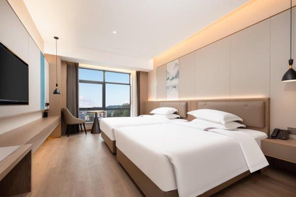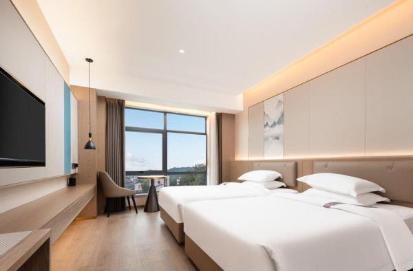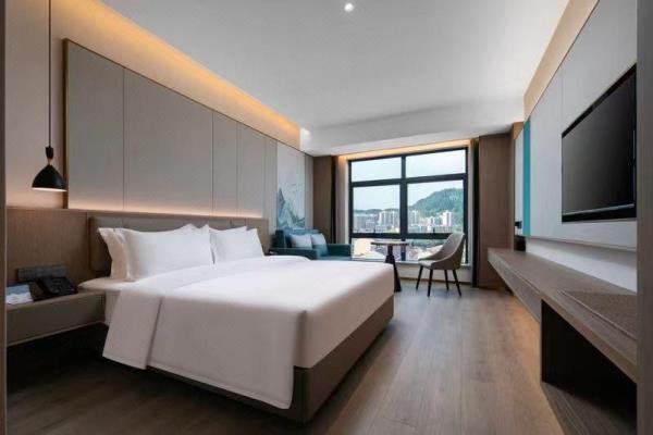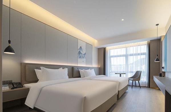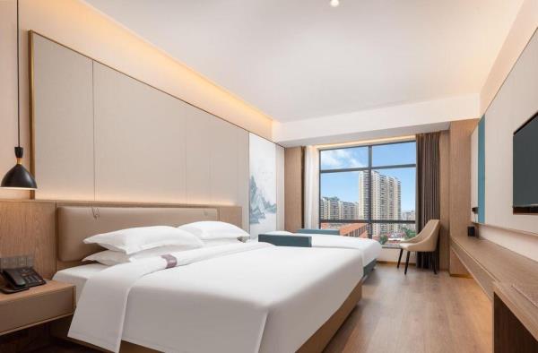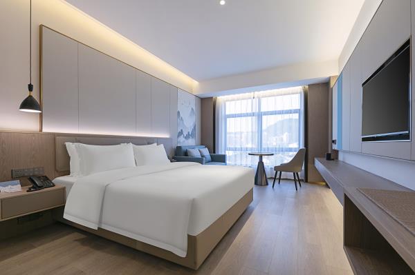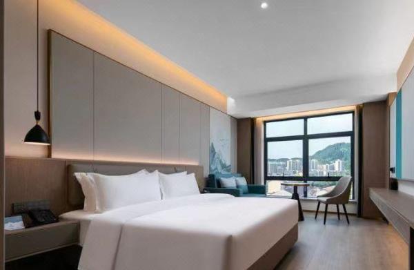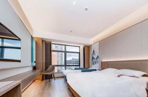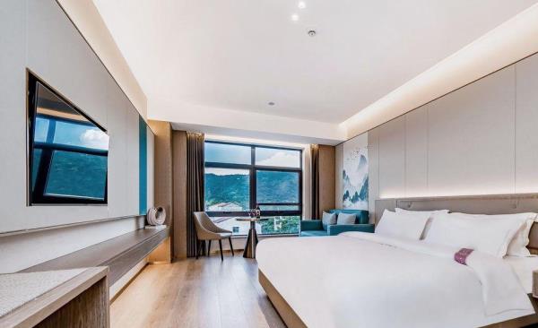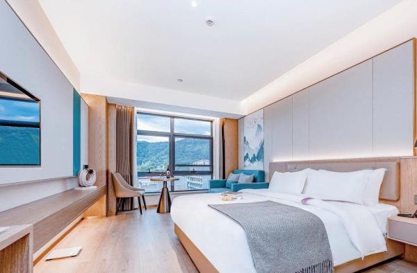 酒店坐落于美丽的英山县温泉镇。地处繁华商业区“英山客厅”,周边餐饮丰富、娱乐购物一应俱全。酒店临近县城主干道、高速出入口,交通出行极为便利。酒店拥有智能客房,集住宿、餐饮、休闲健身、会议为一体的综合性高档酒店。整体设计呈现代化美感,充分与当地自然风景相融合。客房配套设施齐全:小度智能语音控制系统、液晶高清电视、百兆高速宽带、高端洗漱用品等等,床上用品均采用高端厂家生产,为宾客打造舒适的睡眠系统。部分房间配有温泉浴缸设施,在酒店就可以体验“英山温泉”。英山县地属湖北省黄冈市,位于湖北省的东部,大别山主峰-天堂寨的南麓,东与安徽省岳西、太湖交界;南与蕲春、浠水接壤;西与罗田相邻,北与安徽省金寨、霍山毗连。县城历史悠久,自然风景独特。是“活字印刷术”发明者毕昇的故乡,更有着“中国好空气,英山深呼吸”的称誉。附近景点众多:桃花冲风景区、四季花海景区、大别山南武当旅游区、吴家山森林公园、英山县天马寨风景区等等....