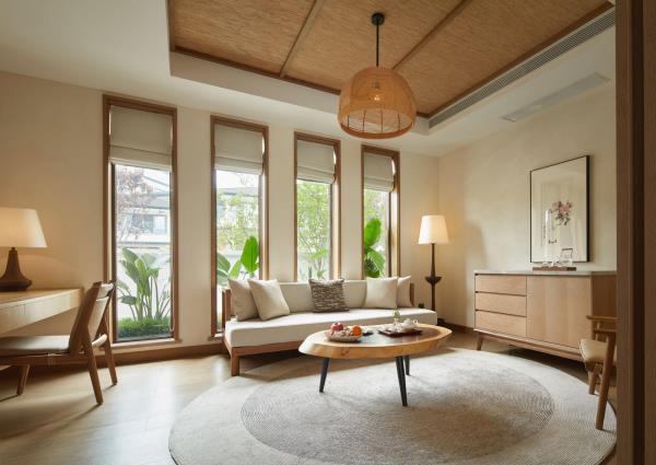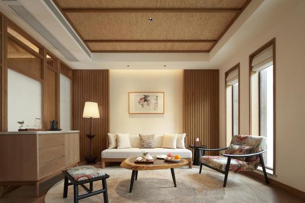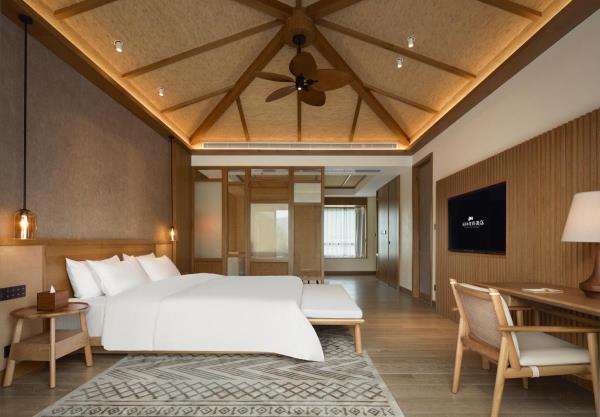 成都三岔湖蕃薯藤度假酒店位于成都东部新区三岔湖风景区核心位置,坐落在三岔湖畔,距成都市区40分钟,距天府国际机场仅25分钟车程。酒店源属中国台湾桃园市蕃薯藤·TINA家族,自1996年创立以来,深耕台湾市场,并在长三角地区和四川成都持续发展。蕃薯藤·TINA家族秉承“永续循环”的理念,以扎实的有机农业为核心,有机农场,有机食品加工,有机度假三产融合为方法,致力于为游客提供有机生态的生活方式和健康无添加的新鲜食材,打造新有机农业的运营模式。酒店建筑群依山而落临湖而居,静谧雅致的院落式奢华度假套房均设有前庭后院及私家汤池,每间套房均在100平米以上空间。酒店配备中餐厅蕃薯藤厨房、缇娜咖啡及宴会厅,除此之外还倾力打造多元性互动空间场景体验,茶书院、严选商店、烘焙工坊、生活教室、宝贝乐园和休闲户外草坪等区域,保持对大自然的向往,健康有机生活方式的探索,身心的疗愈,定制化的管家服务为宾客营造“家外之家”的优雅闲趣度假氛围。成都三岔湖蕃薯藤酒店将人文与自然有机融合,勾勒出一处湖畔栖居秘境,让宾客逃离城市繁杂喧嚣,放缓脚步用心阅读旅行,纵享私汤、私园、私厨的自然健康生活,体验一场有温度、有情怀、有交流的陪伴之旅。