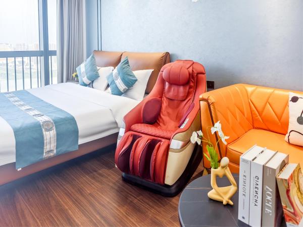 迪达国际公寓位于珠海横琴灏怡财富中心B座公寓楼,与横琴口岸相邻,下楼左转直走即可到达口岸大楼,通关十分便捷,省时省力省钱。地理位置优越,交通便利,周边配套齐全。楼下便有美宜佳便利店;对面是网红打卡地励骏庞都广场,经由横琴口岸地下通道步行大约5分钟;往横琴口岸方向步行约5分钟便是横琴购口岸商业广场;与繁华的中央汇美食广场相距步行约10分钟;多种交通工具可到达珠海长隆国际海洋度假区,驾车约15分钟,城轨仅需7分钟。公寓房间采用现代简约的风格设计,时尚奢华的装修布置,一应俱全的设施设备,贴心配备了按摩椅,为您缓解旅途与工作的疲惫,给您的身体“充满电”;24小时热水服务时刻为您洗去一身倦乏,重拾愉悦;更有洗衣机帮您解放双手,解决洗衣的烦恼。公寓完善的配套设施,舒适的个性化服务,是您商务出行,旅游度假的理想之选。