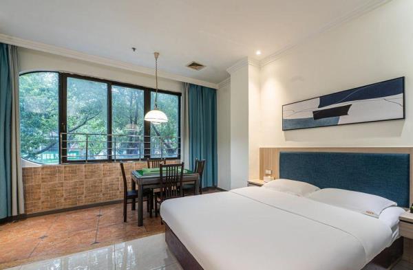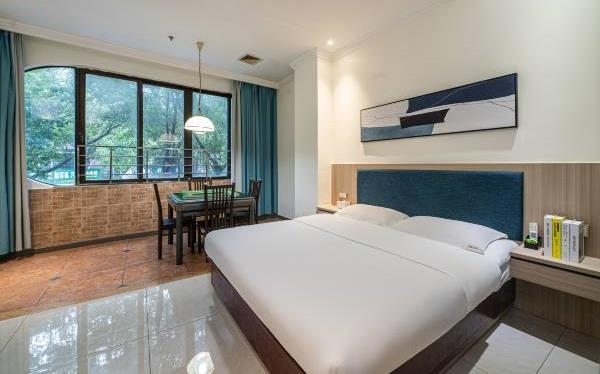 便利设施:WIFI、空调、空调-仅制冷、暖气、地暖、保险箱、麻将桌、沙发、洗衣机、熨斗/烫衣板、电风扇、空气净化器、220V电压插座、多种规格电源插座、自动窗帘、单一规格电源插座、蚊帐、电热毯、书桌/工作区、餐桌、饮水机、桌游、跑步机
