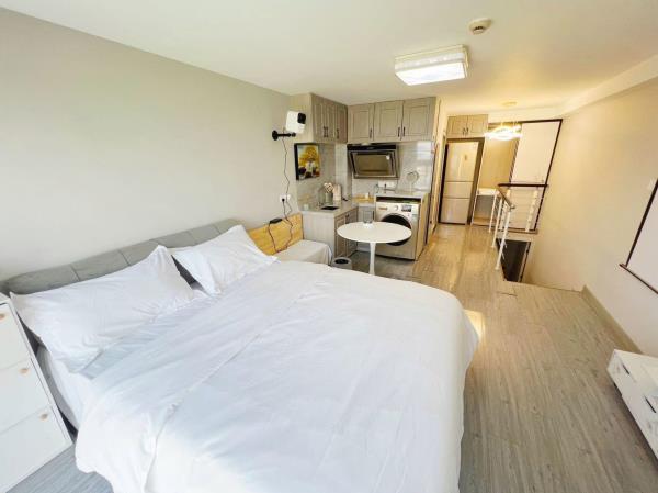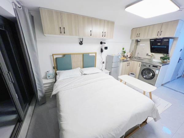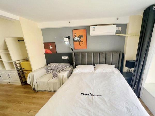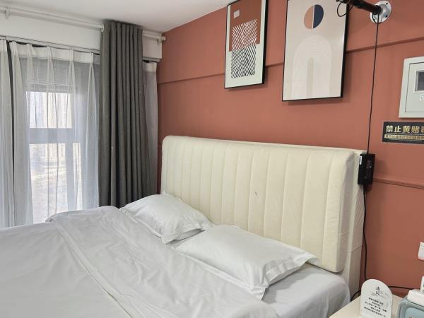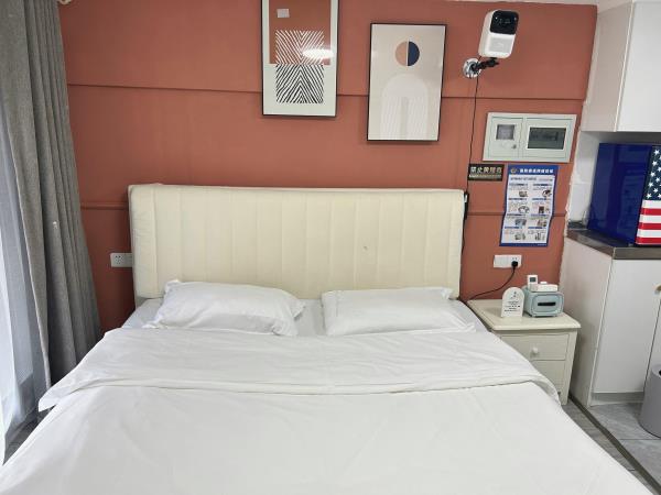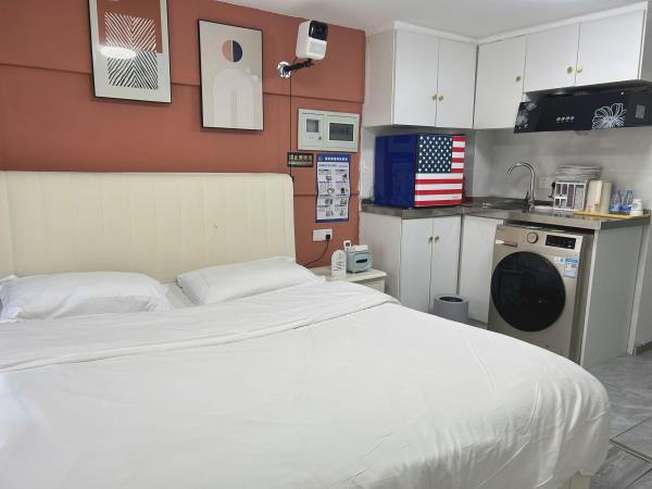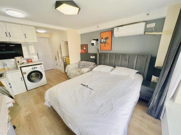 房间内部:[轻奢装修]舒适大床,精心挑选的四件套[贴心卫浴]一次性洗漱用品、沐浴露、洗发护发、24小时热水