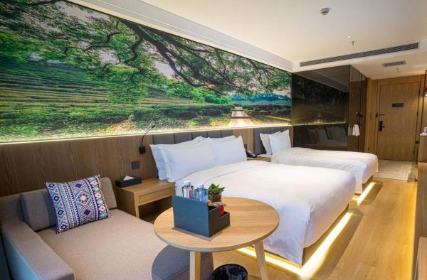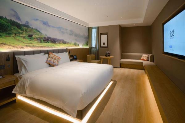 酒店是秋果集团推出的都市人文精品连锁酒店,致力于为旅途客人提供全新的住宿体验,引导新的旅途生活方式。酒店配备维生素加油站,随时补充营养;美国黑科技的深度清洁系统,保证房间任何角落清洁;多种房型可选,满足不同住宿需求;标配新风系统,随时呼吸新鲜空气;日本进口SARAYA消毒用具,保证居住空间洁净;德国进口朗乐福床垫,贴合身体,带来舒适体验;多种可选睡枕,让您在尽享优质睡眠;深夜暖胃粥,抚平深夜倦意,舒缓入睡心情;百岁山等饮品,无限量供应。在都市中,独享世外桃源般的生活。酒店坐落于呼和浩特市玉泉区五里营商圈、万锦生活圈,面朝包头大街主干道,毗邻南二环快速路,近地铁2号线五里营站C口,交道方便、出行便利。酒店周边有万锦融城、万锦香颂、五里营小区等大型生活区;闻都建材城、红星美凯龙、大麒装饰等大型建材市场。周边生活娱乐产业发达,各种餐饮娱乐场所一应俱全,有大型宴会成女神酒店、大型洗浴和沐塘汗蒸、清溪川水汇、呼市网红重庆老火锅餐厅等等;距呼市旅游打卡地“大昭寺”仅约15分钟车程。酒店拥有配套设施齐全的大床房、双床房、亲子家庭房、影音娱乐房等房型,满足您入住的多种需求。酒店有100平方米的会议空间,配备超大型LED屏幕,是各类VIP接待、企业活动的理想场所。 真诚、友善、朴实的秋果人期待与您成为朋友!自然、健康、率性的生活方式期待您的参与、创造和分享!
