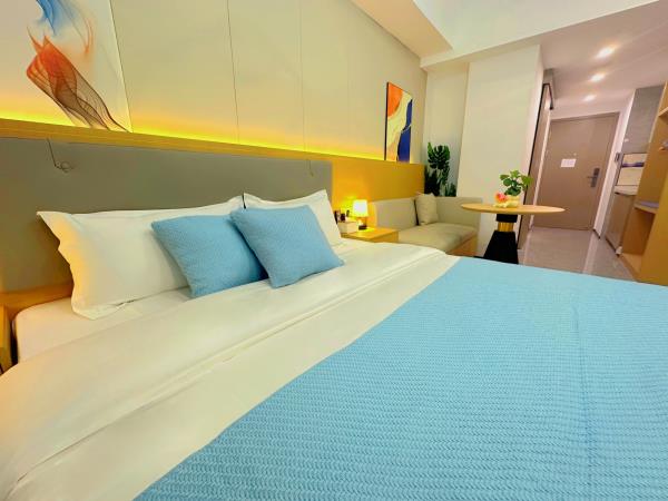 欢迎您选择入住趣致悦庭酒店公寓,趣致悦庭是趣致文旅集团旗下城市项目一个中端公寓品牌,位于港口镇保利国际广场,距中山高铁站约10分钟,2分钟到港口高速口,交通十分便捷。公寓背邻中山湿地公园,周边生活圈集上乘V-PARK生活广场,万民汇商圈,保利商圈中心,吃住玩乐于一体。