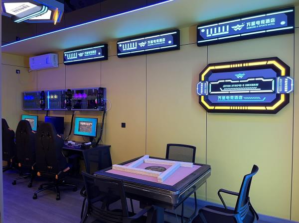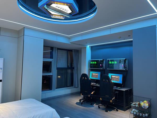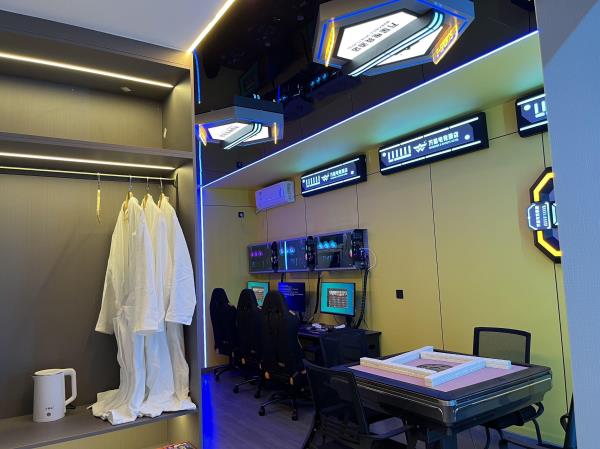 本店属于洛阳高端电竞酒店,酒店装修风格灯光设计都很棒,灯光炫酷电竞氛围十足。酒店有地下停车场,房型设有大床房、双床房,三人、四人、五人、六人等不同类型房型,部分房间配有麻将桌。每个房间都是高配置电脑,专线网络。酒店以超高的配置和舒适的环境,给您带来不一样的入住体验。