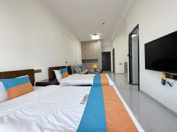 本店位于海南省海口市秀英区滨海大道317号绿地缤纷城3栋108号,公寓欢迎您,近新海港,会展中心,五源河。经过一座城,寻觅一间房,消去您满身的疲劳,我们将以热情的服务,舒适的房间,期待您的到来。我们,在这里,等您来。