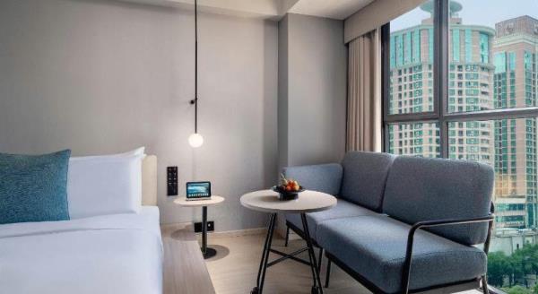 酒店集团专注酒店业务25年,立足于中国高端商务和度假。集团旗下拥有三家控股公司“君澜”、“君亭”和“景澜”。包含了“君澜大饭店、君澜度假酒店、夜泊君亭、PAGODA君亭设计酒店、君亭酒店、景澜酒店、景澜青棠等10个品牌。尚品是集团旗下一个全新的属性,致⼒于为市场提供⼀个全新的融合⼈⽂与科技、观照个体与时代的酒店产品。是该品牌系列的首开酒店,为中国原创酒店品牌。酒店坐落于深圳罗湖商业文化核心区域,位于深圳主干道深南东路与东门南路交叉路口,毗邻东门步行街,国贸商城,金光华广场,地王商圈,万象城等购物娱乐中心,距离罗湖口岸,深圳火车站仅8分钟车程。酒店的理念是倡导一种实现“连接”的生活,连接城市、连接社区、连接自己……我们通过智能设备及系统,从技术和精神上帮助人们摆脱出行在外的不安感。酒店主楼13层,酒店风格定位为城市中的治愈空间,舒适度是首要考虑要素,1楼独具尚品特色的大堂,集“尚”咖啡吧、休闲、商务功能于一体,13楼的“品”餐厅为您提供包含卡路里和热量指数的健康早餐,以及夜晚给您带来氛围感十足的清吧。酒店房间的体验,从开门的瞬间开始,为了随着房间的深入,姿势逐渐变低,设计了各种家具的高度,为用户带来舒适、放松的美好体验。客房内智能客控,可移动办公桌搭配人体工学沙发,为商务客人提供超越期待的舒适办公环境,“KINGKOIL 金可儿”床垫,健康舒适的睡眠体验,卫生间的热带雨林花洒及提供日用夜用洗浴产品,享受酣畅淋浴。客房minibar饮品及小食免费供应,挂耳滤泡咖啡,专享纯正焙炒咖啡。