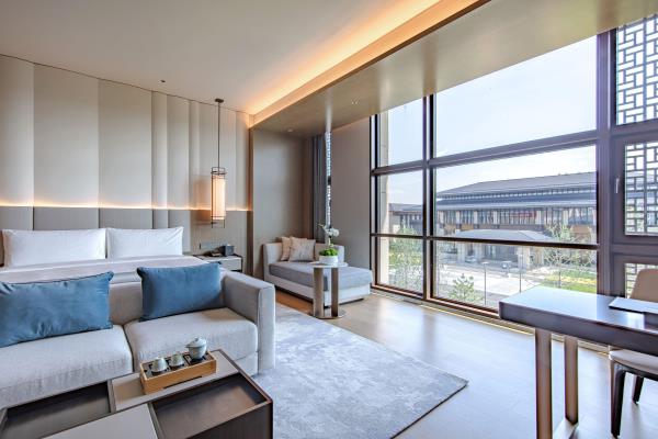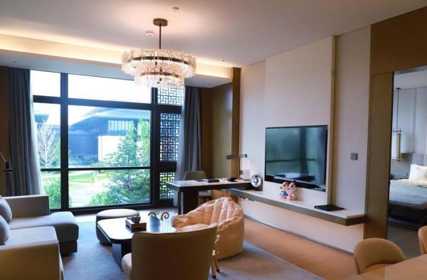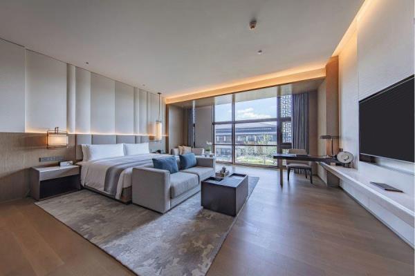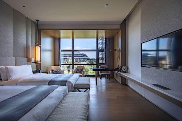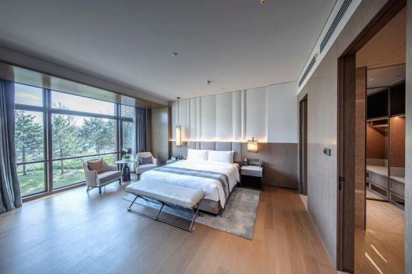 酒店整体建筑群以中轴对称形式进行规划布局,主打中式园林风格,单体建筑外观规矩方正,南北礼仪轴线,雄浑沉稳,中间曲水环抱,呈围合之势,凸显迎宾气势,彰显礼仪制式之美。建筑群包含国际酒店、会议中心和贵宾接待楼,是集国际峰会、商务旅居于一体的东方园林式酒店。国际酒店是全开放的商务接待区,建筑面积约6.6万平方米,配有宴会、餐饮、会议、康体等配套设施。会议中心建筑面积约4.5万平方米,拥有可容纳1000人的宴会厅、1700人的会议厅和多个中小型会议室,可举办高规格会议会展、论坛发布会等。贵宾接待楼共13栋,配有会见、宴会、康体等配套设施,采用高标准设计。酒店由中国雄安集团城市发展投资有限公司投资,并委托北京⾸旅集团诺金品牌管理。