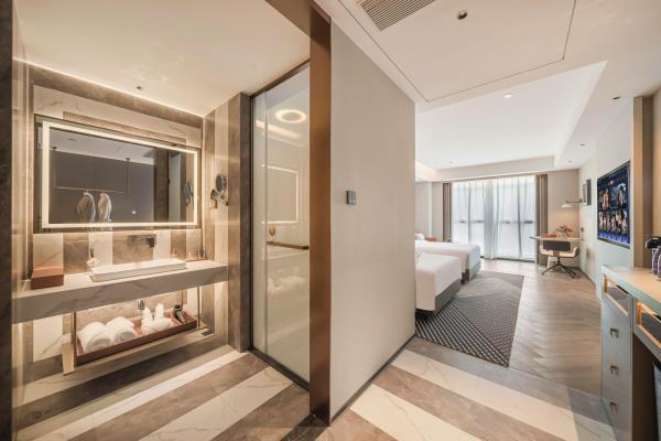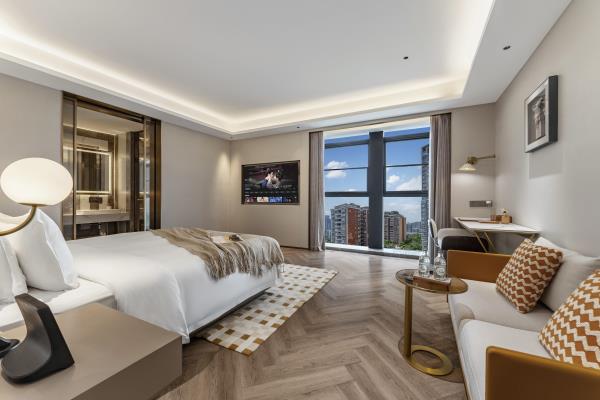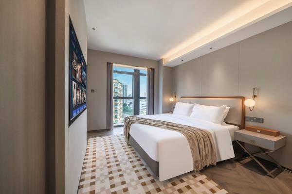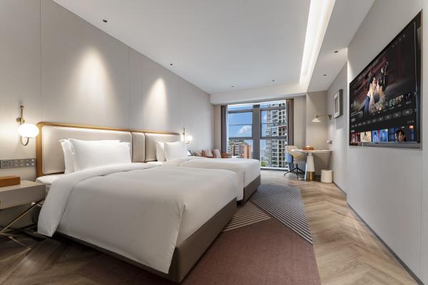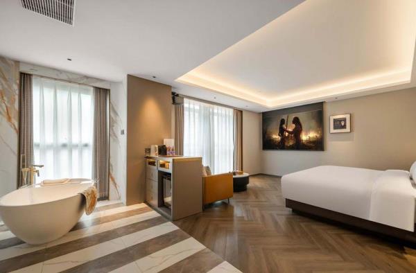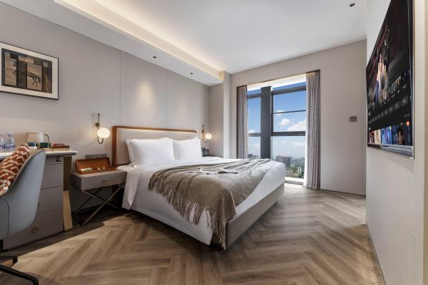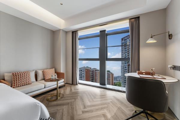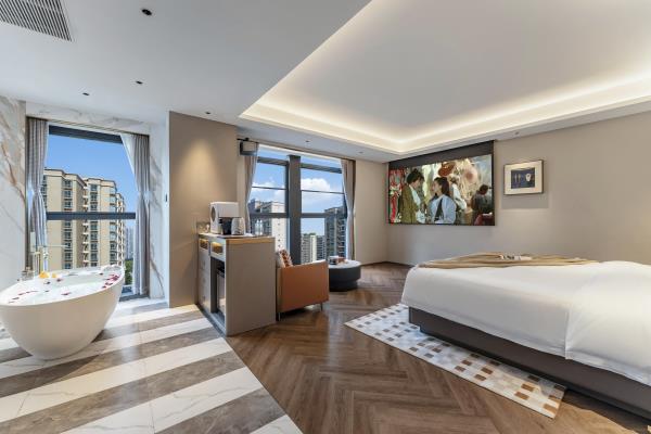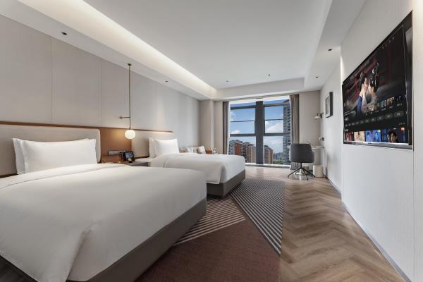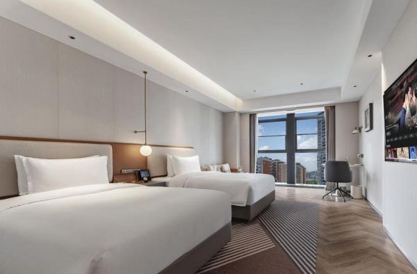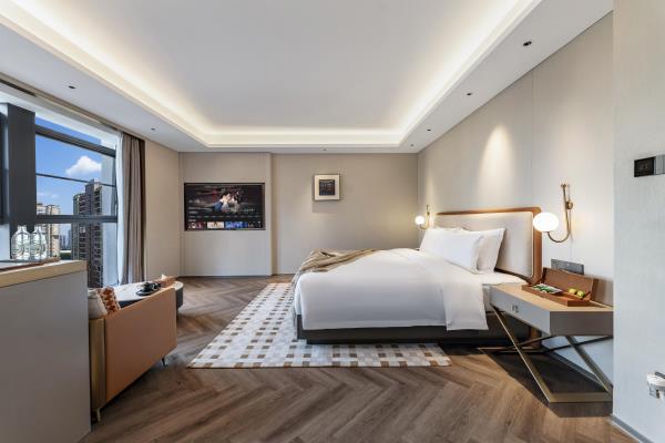 本酒店隶属于美国温德姆酒店集团下的豪生品牌酒店。 酒店坐落于重庆市两江新区泰山大道,毗邻重庆两江中央商务区,集购物休闲、商务办公、高端社区于一体。酒店拥有舒适时尚的客房,沉浸式餐厅及高端完善的会议设施,专业、贴心的服务带你体验,富有个性, 多元化的潮时代沉浸式社交酒店 。在这里, 沉浸式的社交场所,带你开启美妙生活旅程,抒写独属于你的故事。端起一杯鸡尾酒,让百老汇的张力引领你穿梭于时尚与现代智能之间 。无论是社交分享,还是味蕾的跳跃; 是高效办公,还是全息式健身, 让酒店里充满高光的戏剧化角落满足富于探索精神的你 。在这里,每一次停留不仅是住宿,更是一场探索未知、邂逅惊喜的“高光旅程”。