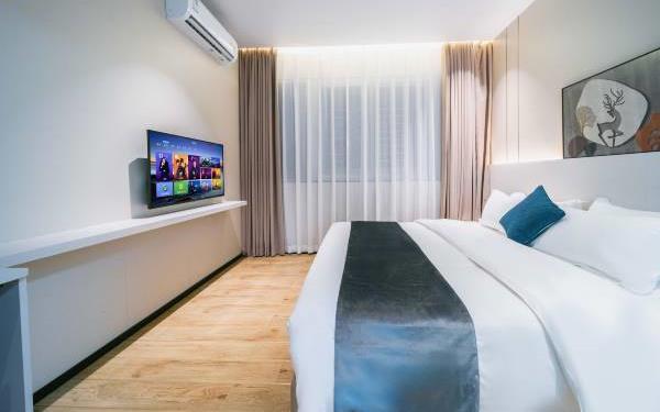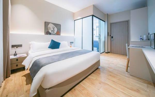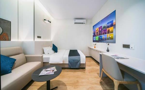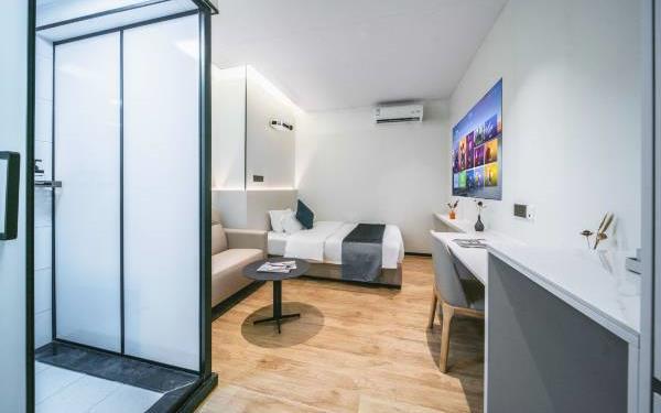 公寓位于深圳繁华的罗湖商贸区东门步行街旁,步行可达国贸、万象城、金光华广场,毗邻文锦渡口岸约800米和罗湖口岸约1.5公里。酒店交通优势明显,出行便利,物业位于地铁2号线湖贝站上方(D出口直行),距离深圳会展中心车程约15分钟,休闲场所和购物中心遍布周边。公寓配有AI智能房、电竞房、影音房等各种不同房型,给你多重选择;酒店配有高速光纤WiFi覆盖,高清数字电视,自助洗衣机,智能投屏, 公寓主打自助入住体验,畅享私密空间。是您集旅游、娱乐、购物、商务洽谈及出游的理想下榻之处。