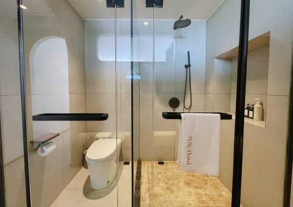卫浴设施:淋浴、私人卫生间、毛巾、拖鞋、24小时热水、私人浴室、浴巾、雨淋花洒喷头、智能马桶。仅部分房间具备:、吹风机