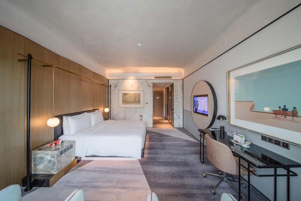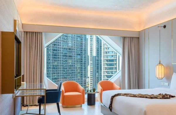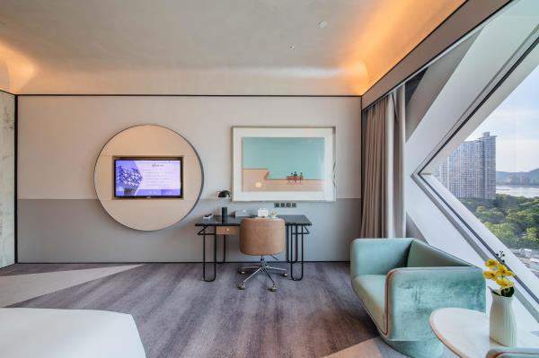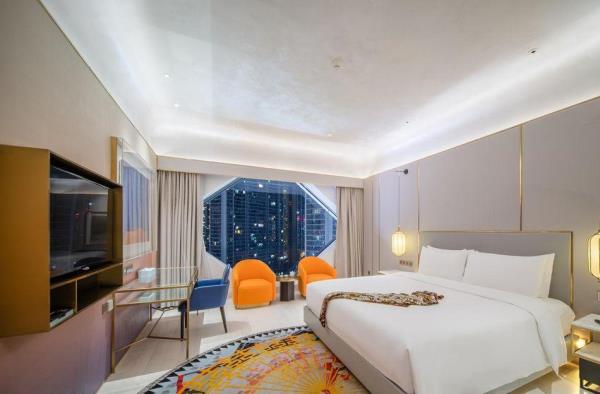 中文:杭州滨江艺珺酒店位于千年历史文化名城杭州,物华天宝,人杰地灵,被杭州高新园区滨江区宝龙城拥入怀内,北瞰钱塘江日月潮升,南望滨江城软红香土,亦为城市风景徒添华灯之魅,艺术之魂。 酒店与杭州萧山国际机场相距30分钟车程,与西湖风景区、湘湖旅游度假区、宋城景区等相距约20分钟车程,出游便利。步行至钱塘江仅需5分钟路程,酒店位于滨江宝龙城5楼,坐享商场各种消费及设施便利。 这是宝龙旗下的一家艺术酒店,建筑面积13600平方米,以画廊为灵感,简约而精致的建筑细节连同千年杭州的深厚文化底蕴塑造了完美的背景。酒店建筑外形空中横贯,漂浮滨江,采用现代主义风格的菱形玻璃构成杭州江南新一代地标,拥有百余间(套)艺术客房的新零售概念跨界酒店,严选风情家居潮品,带您走入艺珺特色的艺术睡眠空间。