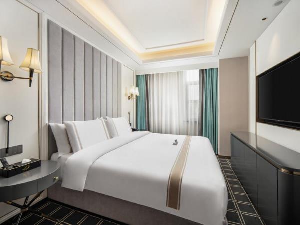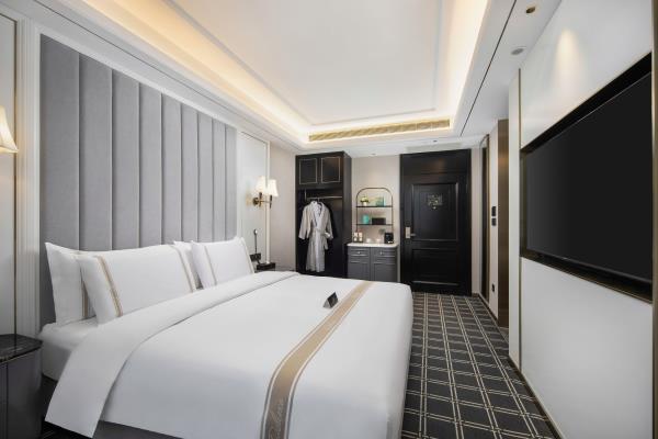 希岸Deluxe酒店隶属于锦江集团(中国区)。希岸Deluxe酒店,为追求被尊崇的有社会沉淀的城中新贵而打造的法式优雅时尚轻奢高端酒店。结合一店一设计的理念,为不同的客人提供符合都市新贵生活方式的空间。希岸Deluxe酒店,就是超越酒店住宿体验的本身,承载情怀,交融与尊属的场地。酒店位于开封鼓楼广场清明上河园景区附近,距开封鼓楼广场步行可达,距清明上河园行车约10分钟,出行交通便利。酒店为住店客人免费提供停车场并有偿提供充电桩。酒店总建筑面积约2800㎡,集餐饮休闲娱乐为一体的复合型酒店。酒店客房主打豪华大床房、雅致大床房、豪华双床房、高级大床房、家庭房、亲子房并专门为女神设计打造颜值LAB房等多种类型房间,房间面积30-50㎡充分满足您差旅出行的居住需求。客房设有“小希”智能控制系统、VPI电视、香薰加湿器,迷你冰箱等设施设备。酒店选用高级慕斯床垫,将“健康睡眠”的概念植入到经营理念中,意在实现“能量激活生命,健康赢得未来”让您在酒店中体验到高质量睡眠。酒店卫浴设备安装智能马桶及24小时零等待热水设备。酒店免费提供休闲健身房及自助洗衣房等设施设备。酒店设有可同时容纳160人就餐的自助餐厅,简洁的自然风与舒朗的格局,营造出宁静而优雅的氛围,为顾客提供赏心愉悦的用餐体验。早餐品种多样化,地道而独具风味的早茶与河南特色的完美结合,让您享受美食与艺术的盛筵。