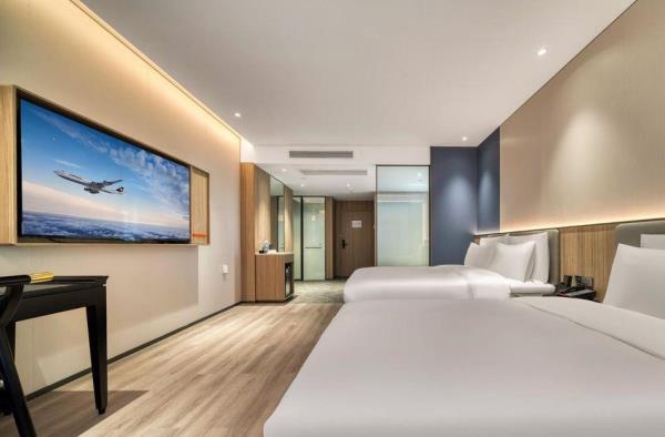 酒店毗邻杭州萧山国际机场,距离地铁7号线新港地铁站B出口步行2分钟,乘坐地铁一站就至萧山国际机场用时很短,酒店距离杭州大会展中心乘坐地铁5站路即可到达,非常便捷;而另外号线地铁也可直达奥体中心、市民中心、吴山广场,到西湖景区也极为便利。远离市区繁华的喧嚣,是您远行前、久归后暂歇的不二之选。酒店总面积8200多平方,拥有客房、健身房、会议室、餐厅、免费停车场。全心的专业服务给您美好的入住体验,帮您卸下差旅前后的疲惫。