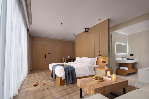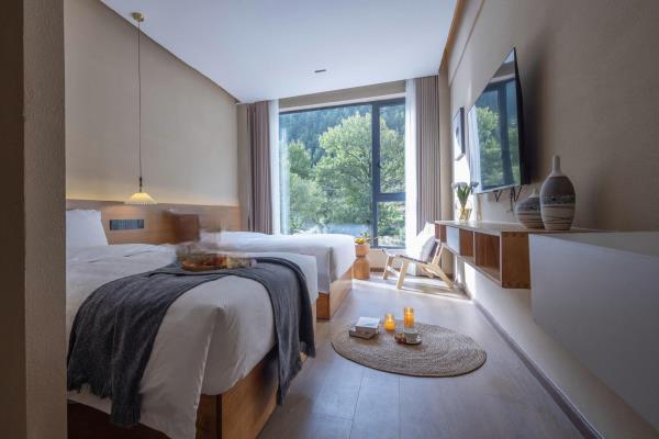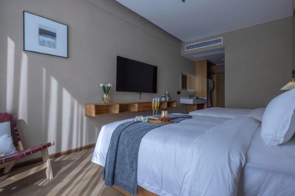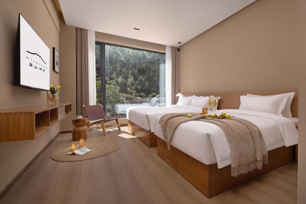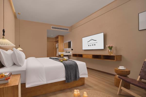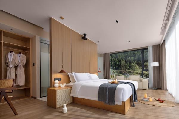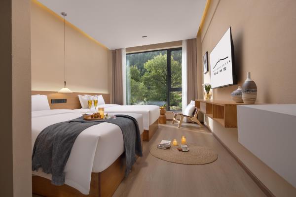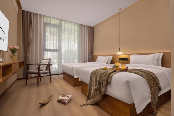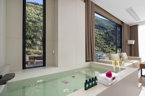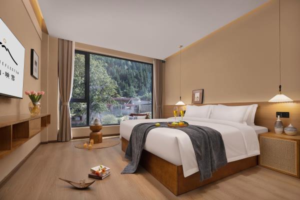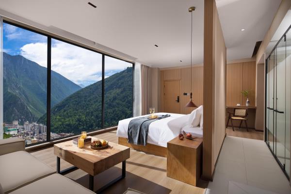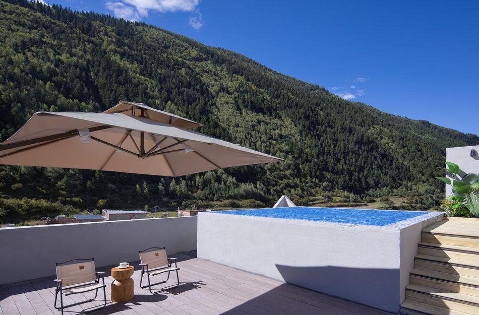 【依山傍水】小金四姑娘山镇沙坝村一组62号,交通便捷。【四姑娘山】是川西旅游环线的热门景点,由三个美丽的沟组成,其中双桥沟是游客们评价很高的风景地。景区售票处和入口距离酒店车程仅需5分钟。【民宿硬件】酒店以现代度假别院的风格为主,注重客户体验感。酒店房间配备智能马桶,干湿分离,房间有4k高清投影仪,有单独的私汤泡池,270度观山景河景。一房一景一汤池,沉浸式享受川西的美景,给客户带来愉悦感和舒适感兼具的旅行体验;酒店有露天观景大平台,这里有私人无边泳池,四面环山,给客户带来不一般的体验。酒店有露天影院,可以露营,冥想,品茗,养肺,下午茶,BBQ。这里没有城市的喧闹和浮躁,只有回归自然的宁静。客户可以在酒店品尝到手磨咖啡,在酒店的书吧或咖啡厅放空自我。酒店住宿,当地特色餐饮,健身房,小卖部,休闲娱乐一应俱全。同时拥有会议厅,自助早餐厅,24小时管家式服务满足不同的客户需求。是客户度假休闲、川西旅游、商务宴请、团队建设的优良选择。【酒店特色设施】网红无边泳池,露天电影院,露天BBQ,手磨咖啡,私汤泡池,超广角观山景河景落地窗,健身房,自助早餐厅,会议室,咖啡厅,书吧,小卖部。【贴心服务】入住引导,24小时客房服务,提供各种消耗品补给。【功能多元】是您度假休闲、川西旅行、娱乐、商务宴请、团队建设、户内外团队拓展训练的理想场所。