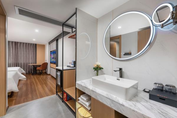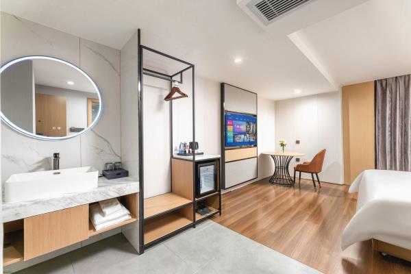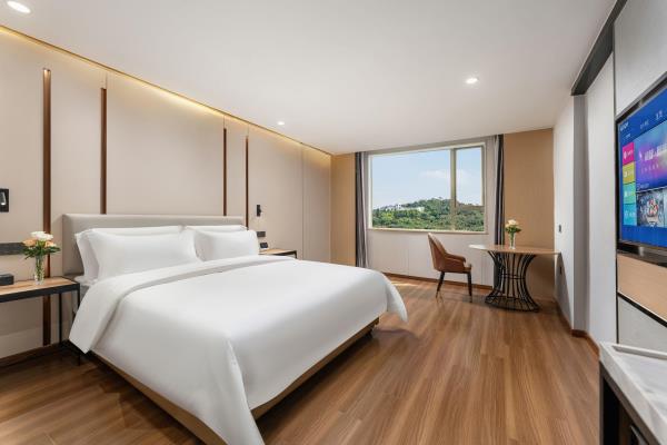酒店秉承以“智能”为主题打造商务,高端,舒适多种房型供选择,酒店配备智能马桶、智能窗帘、智能客控、智能机器人等,酒店设施配套齐全,服务贴心,美景尽收眼底。欢迎您的入住!本店位于西樵江浦东路42号,酒店地理位置优越,周边配套完善。与酒店毗邻有沐足中心、富盛广场、金典广场、樵岭国际购物公园(内有中西餐厅、粤菜、湘菜、健身房、SUN度KTV、电影院、卜蜂莲花购物超市、金六福金店、老凤祥、步行街)等;步行10分钟新城广场内设活力无限KTV、中影新城电影院、麦当劳等商家以及百胜广场有波尔多西餐厅、湘菜馆、喜羊羊火锅、坂沺寿司、肯德基”等商家供您选择,让您娱乐、美食两不误。酒店距离执行中学开车大概10分钟左右,南海中学开车6-7分钟,西樵高级中学开车10分钟左右,风景区西樵山只有3分钟车程,走路5分钟即可到西樵山北门,广东千古情开车15分钟,15分钟车程即可到达南海博物馆、国艺影视城。酒店周边的交通四通八达,距广州绕城高速西二环10分钟、广佛高速及佛山一环15分钟,20分钟可到达高明客运港,30分钟可到达佛山祖庙及市区CBD购物中心,50分钟可到达广州南站,60分钟可到达广州白云国际机场,80分钟可到达深圳罗湖或皇岗口岸。酒店共设各类型房间,客房装修现代、豪华、高雅、采光高端、智能,优雅的布局,气息非凡。惬意温馨的空间,能让您瞬时的放松,将洗尽您繁华闹市的烦嚣和压力。酒店十楼设有早茶厅,内部环境优雅而浪漫,透过落地玻璃可欣赏窗外西樵山自然美景,能让您有一个舒畅的心情享受美,安静的环境非常适合您与客户进行商谈或者约上三五个好友谈心叙旧。酒店一切舒适的环境和细致的服务都会是您商务、旅游、度假的选择。