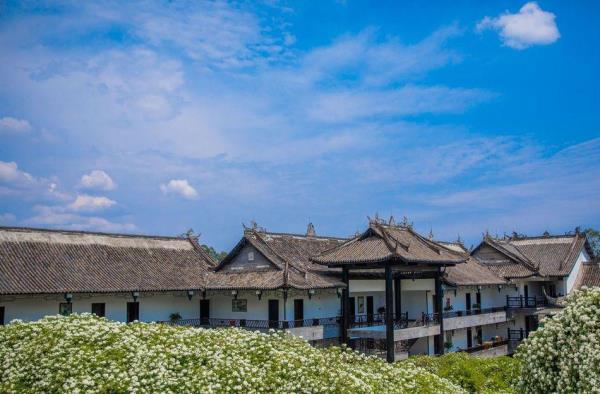 成都双流锦绣城酒店:锦绣城、桃源之梦 锦绣其城、中国西部绿色康养之城;四川省乡村酒店,位处成都市天府新区“两湖一山国际旅游文化功能区"核心区的锦绣城,占地面积3000余亩,秉承川西民居的风格,依山势而建,跃层而上,古朴典雅,绣水环绕。以幽雅的环境为依托,竭诚提供餐饮住宿、休闲娱乐、会议培训、团队拓展、品茗垂钓、真人CS野战、飞跃丛林、绿道骑游等项目服务,乃气韵灵动之宝地、康养圣地。酒店内有松林丛生、白鹤翩跹、蛙鸣阵阵;遍栽七里香、扁竹根、迎春花等,山花烂漫时节尽显山野之趣。上乘宝地,据守层峦叠嶂之龙泉山脉,构筑气韵灵动之山水世界。