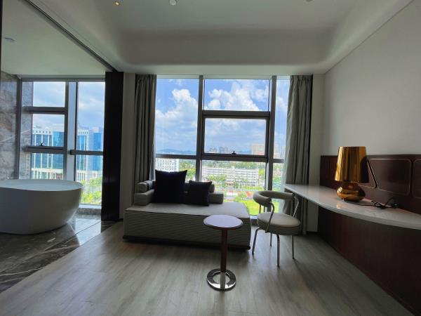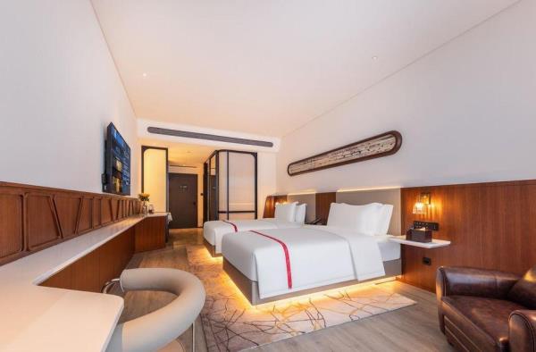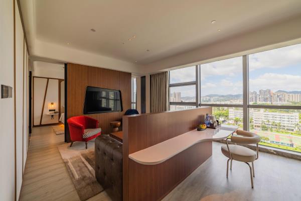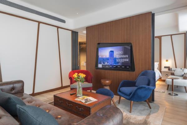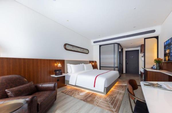 酒店位于珠海市新香洲梅华西路与敬业路交汇处(珠海市公安局斜对面)。毗邻印象城(山姆会员店)、 金发购物中心、珠海一中、珠海市体育中心、香山湖公园,无缝对接金琴快线.兴业快线,瞬间通达全城。踞守湾区桥头堡,一小时纵享粤港澳大湾区生活圈。LeanLuxury精益奢华是RubyHotels的品牌哲学。Ruby的每间酒店都呈现品牌的核心理念-甄选奢华,尽而不繁。擅长用空间讲故事,藉由酒店这个空间载体,希望实现的是一个风格独特、拥有品质与分寸感、激发灵感与创造力的旅行空间:在城市的核心位置,用精品酒吧取代传统酒店大堂,巧妙地将酒店前台、早餐、全日咖啡&轻餐、和酒吧设计融为一体,打造融合了复古与前卫风格、同时富有活力的社交空间。复合大堂结合复古豪华游艇风格的甄奢客房、全日西餐简餐、定期的社群沙龙活动,打造的“城市会客厅”希望带给都市新派旅行者和城市居民的一个放松身心的奢享新体验。