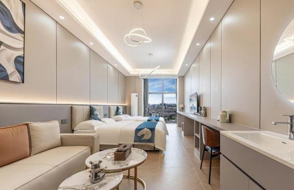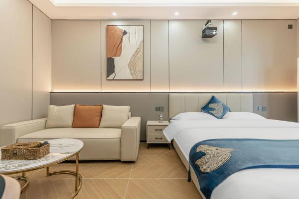 便利设施:WIFI、空调、空调-仅制冷、暖气、地暖、保险箱、茶艺工具、麻将桌、沙发、座椅、洗衣机、熨斗/烫衣板、电风扇、空气净化器、220V电压插座、多种规格电源插座、自动窗帘、蚊帐、电热毯、书桌/工作区、餐桌、饮水机、桌游、跑步机